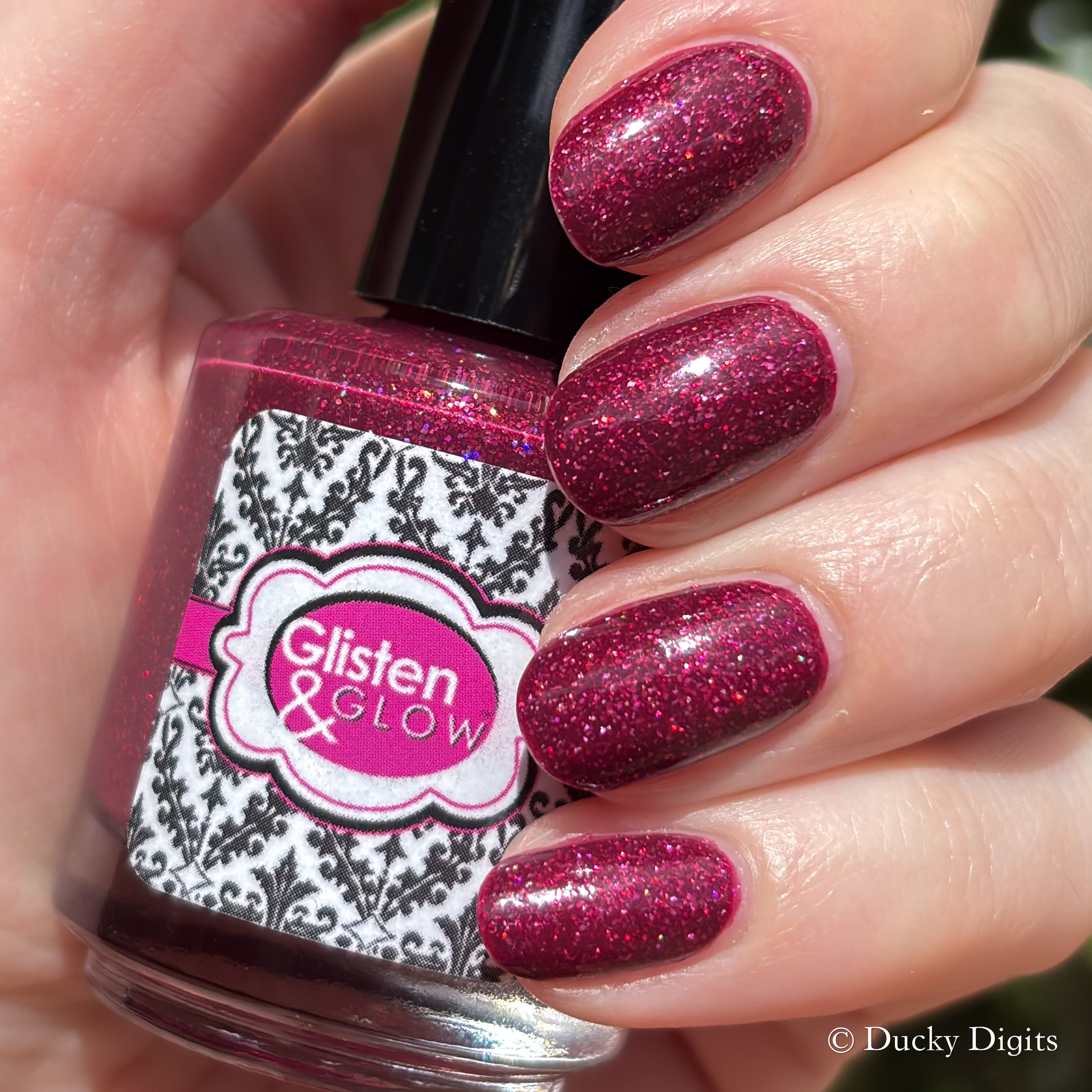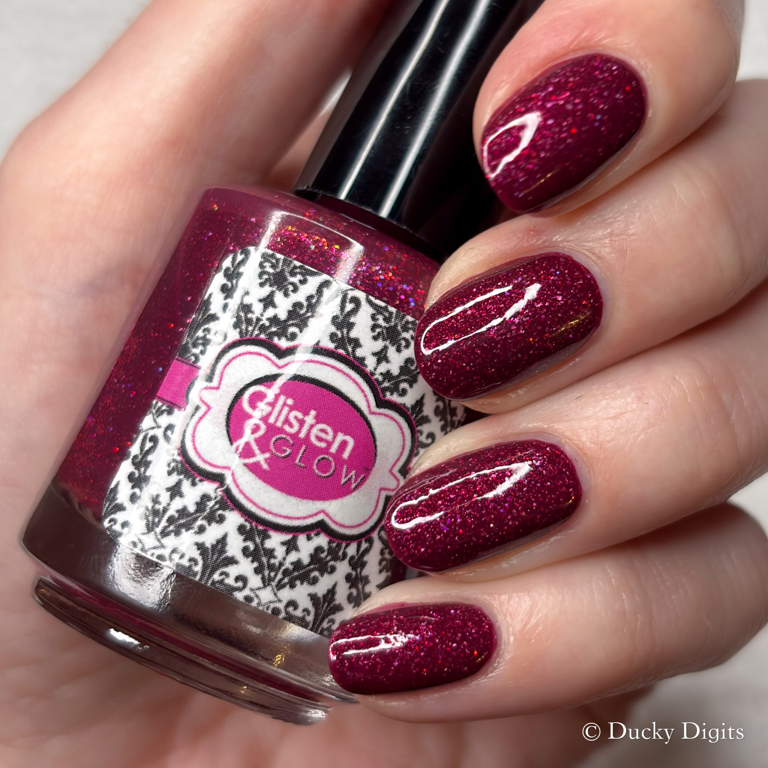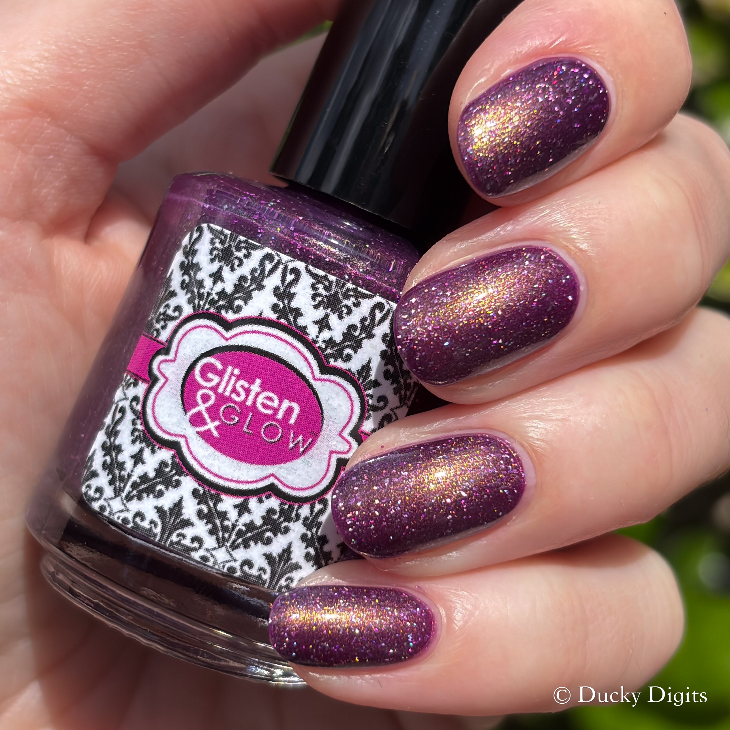 Hi everyone! I have swatches of Glisten & Glow’s upcoming collection to share today. This is a 12-piece polish collection inspired by the Netflix show, “The Hunting Wives”, in collaboration with nail swatcher Jess (@polished_jess). The full collection is currently available for preorder on glistenandglow.com.
