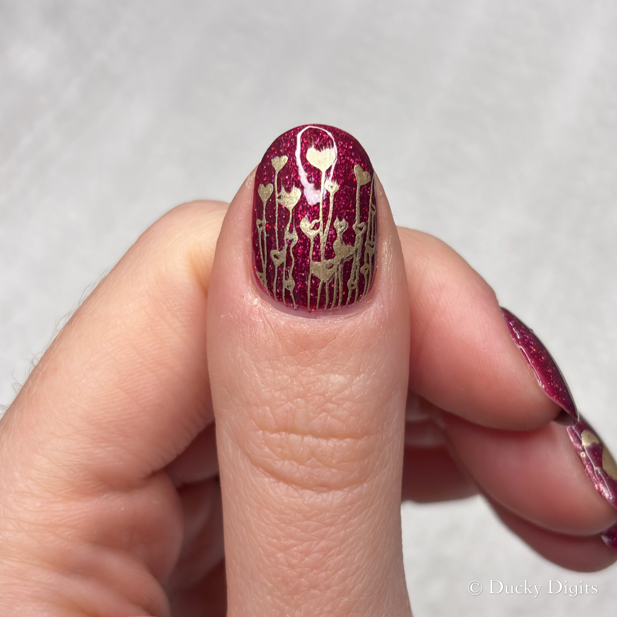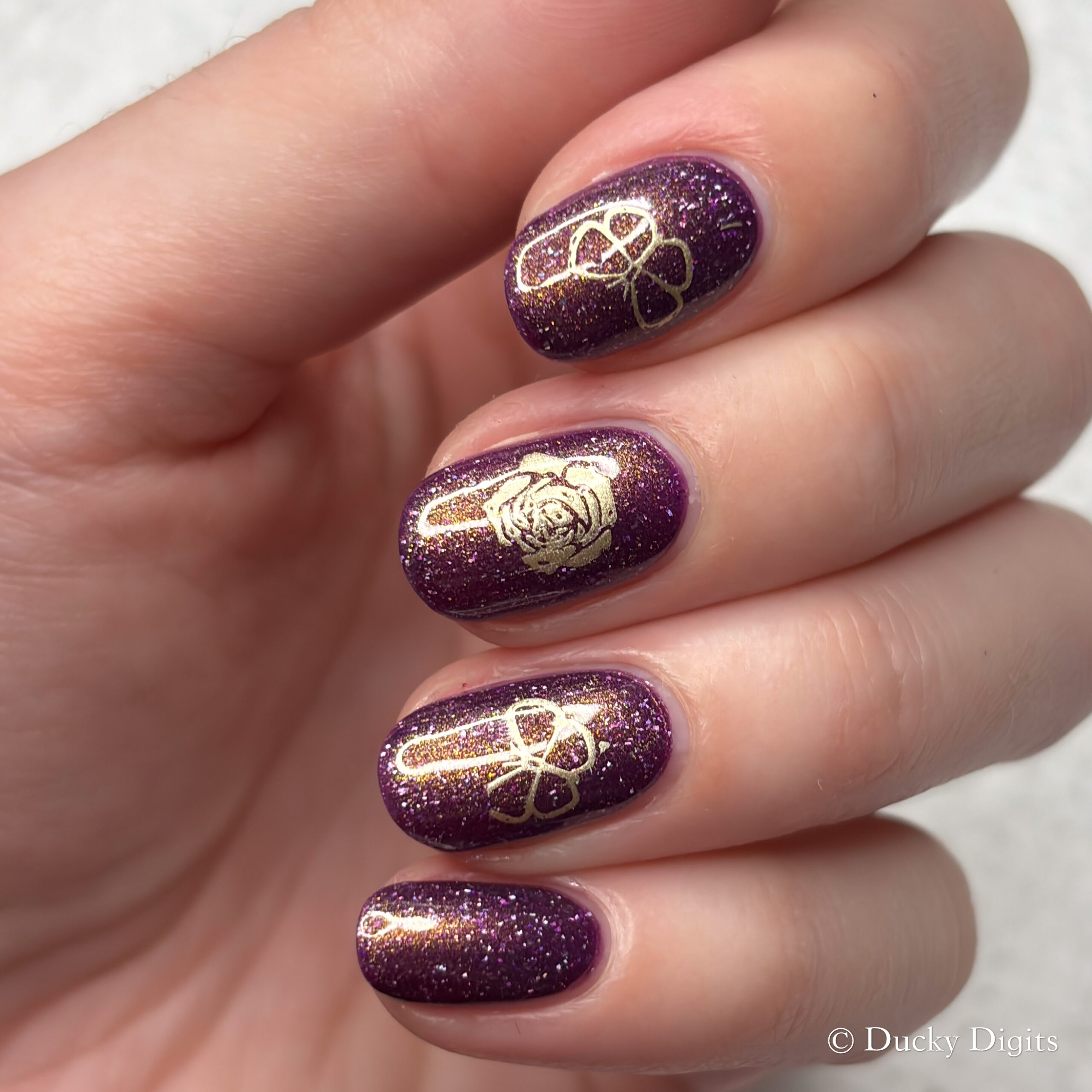 Shown below is a gold stamping polish from Messy Mansion (purchased by me) over Sweet As Pie.
