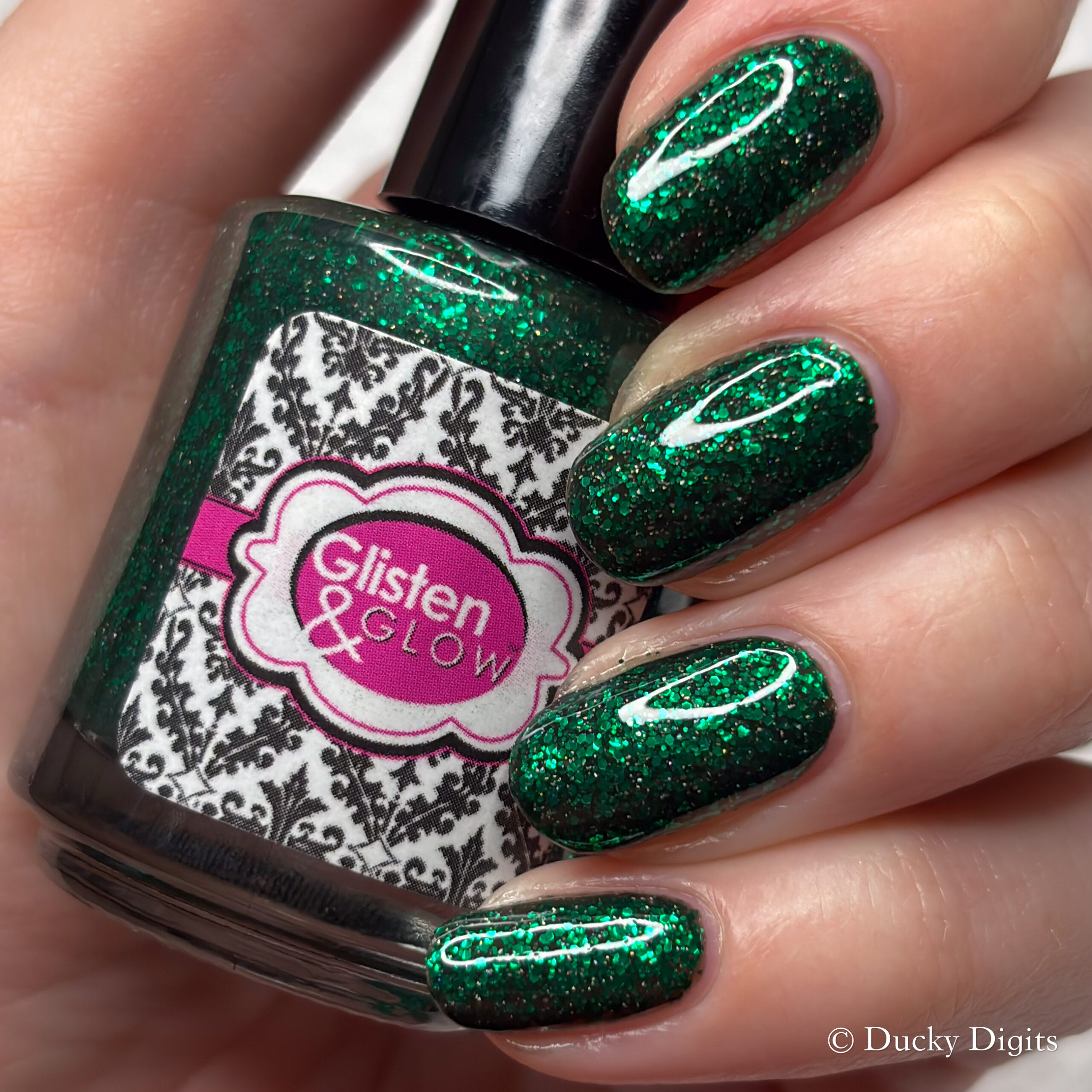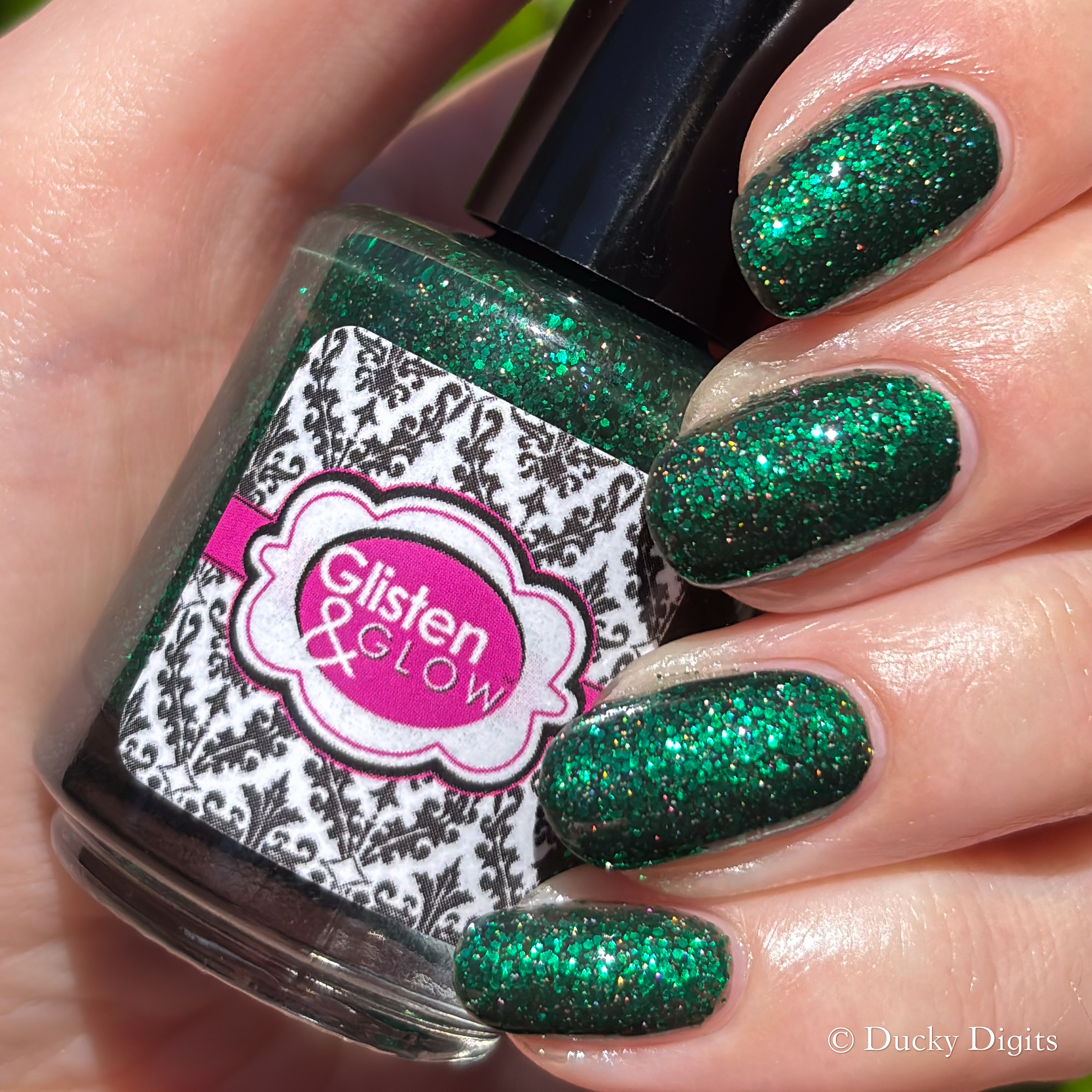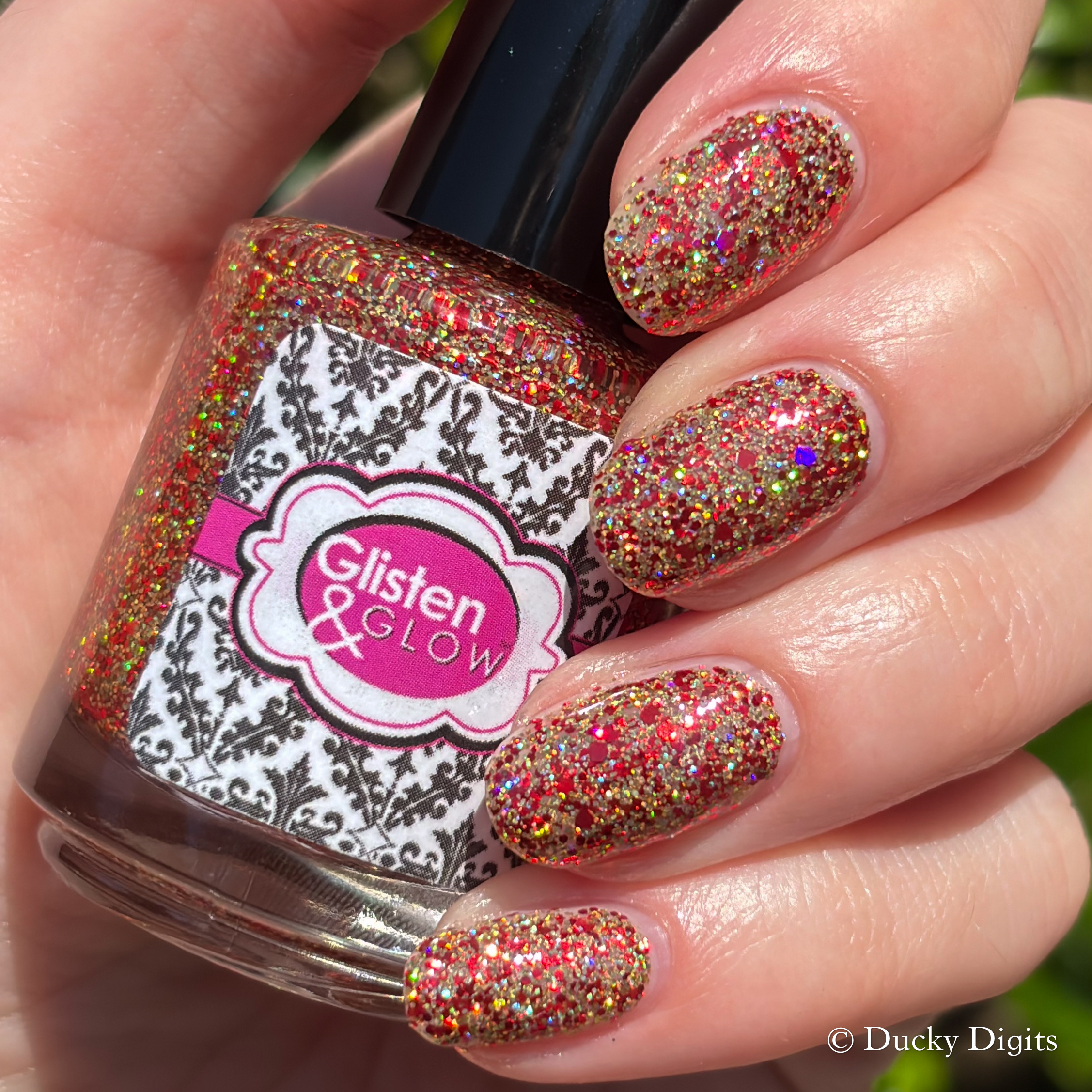 My manicure is 3 coats with Glisten & Glow Glitter Smoother and Top Coat.
