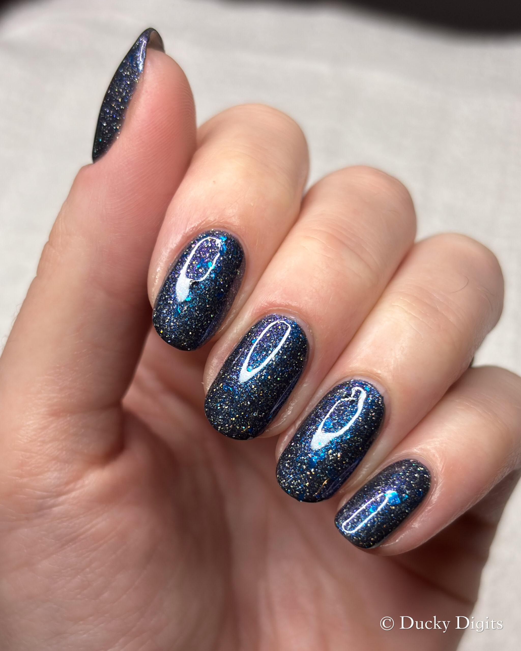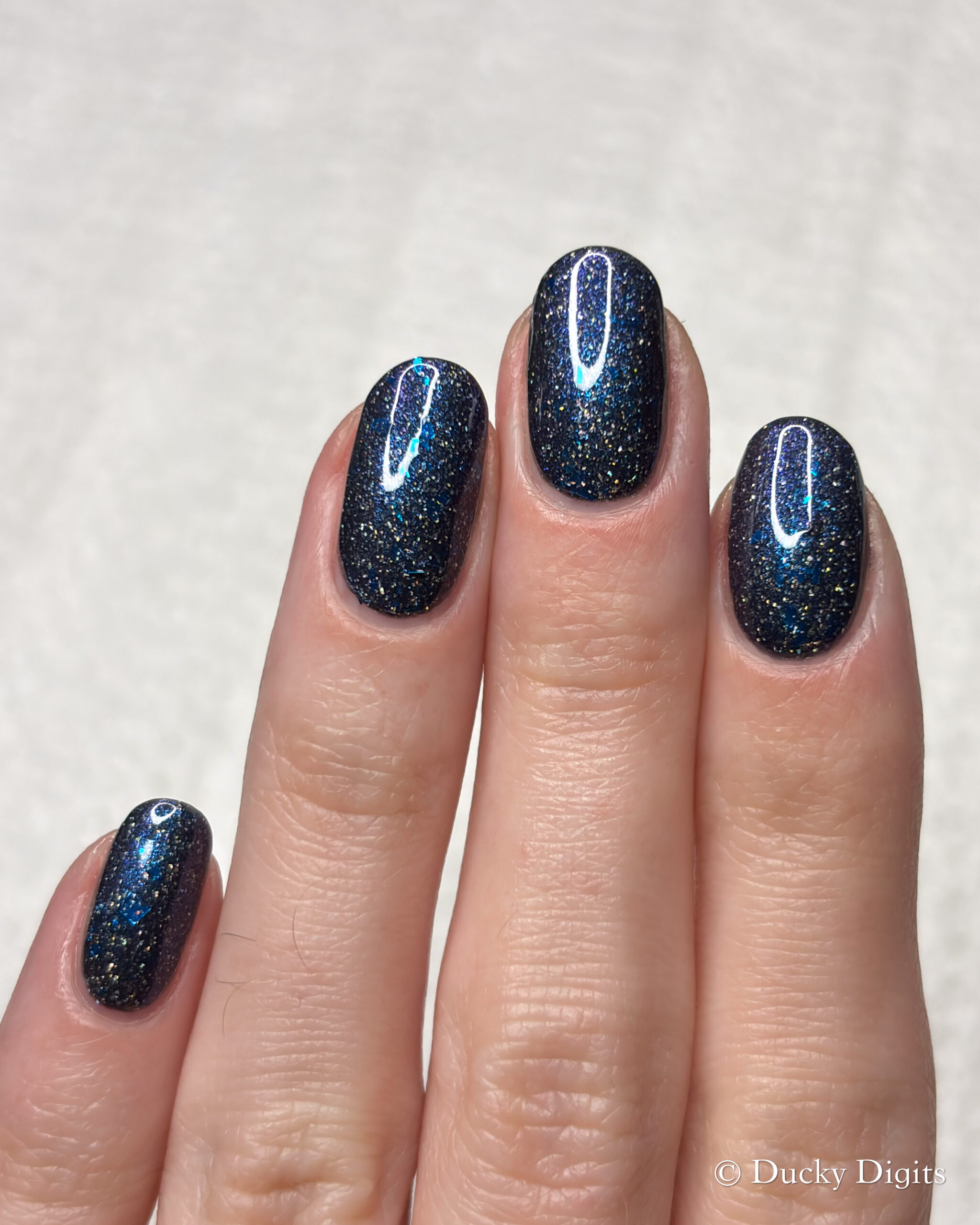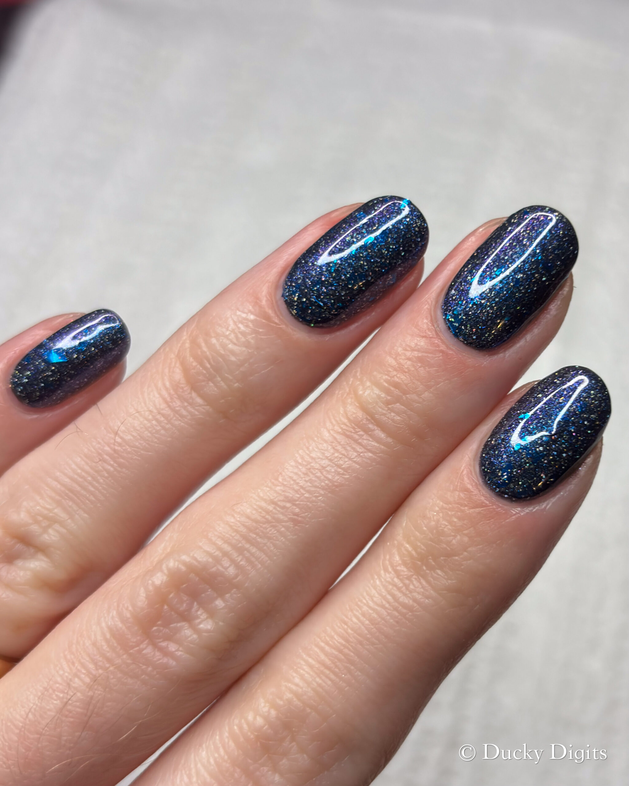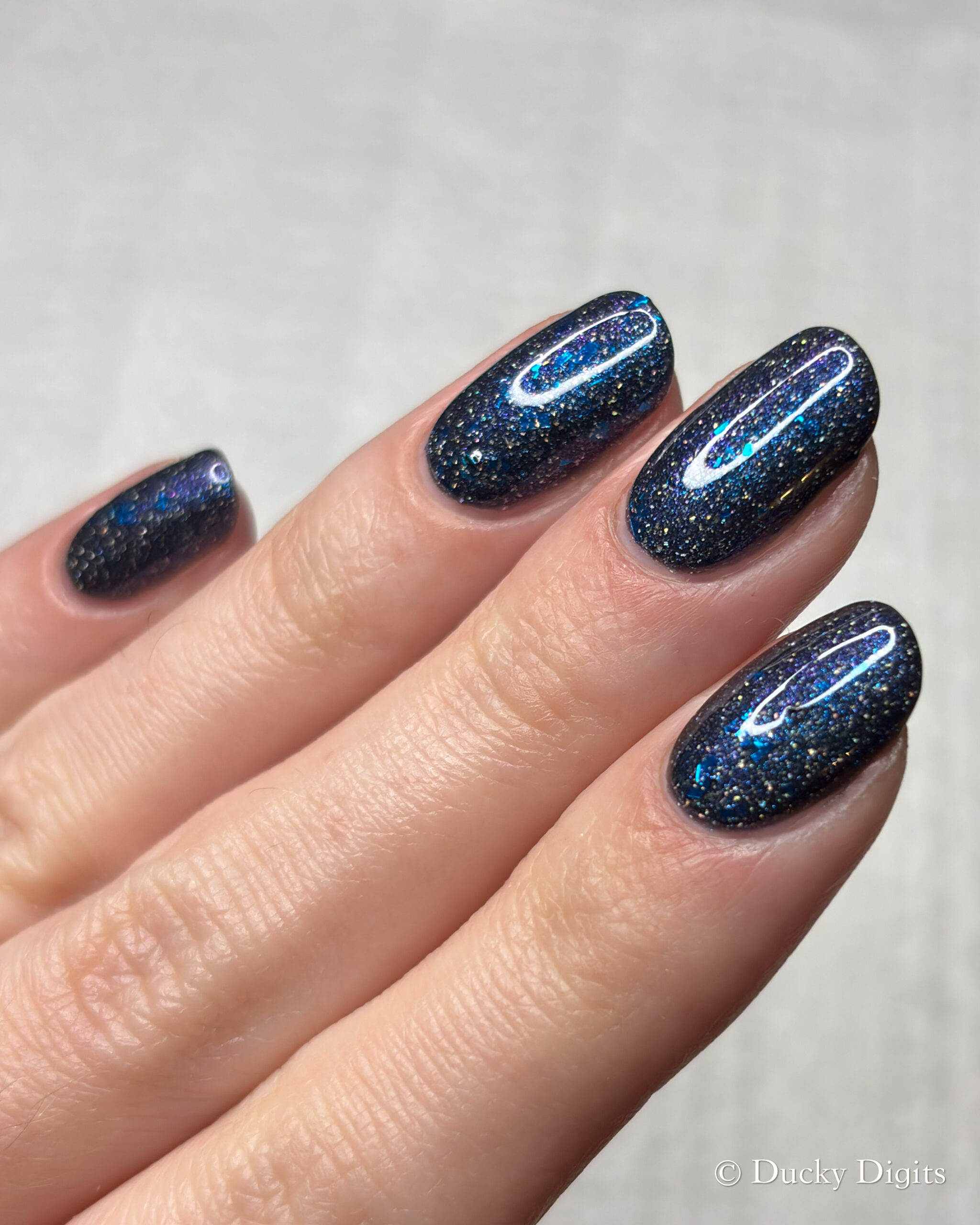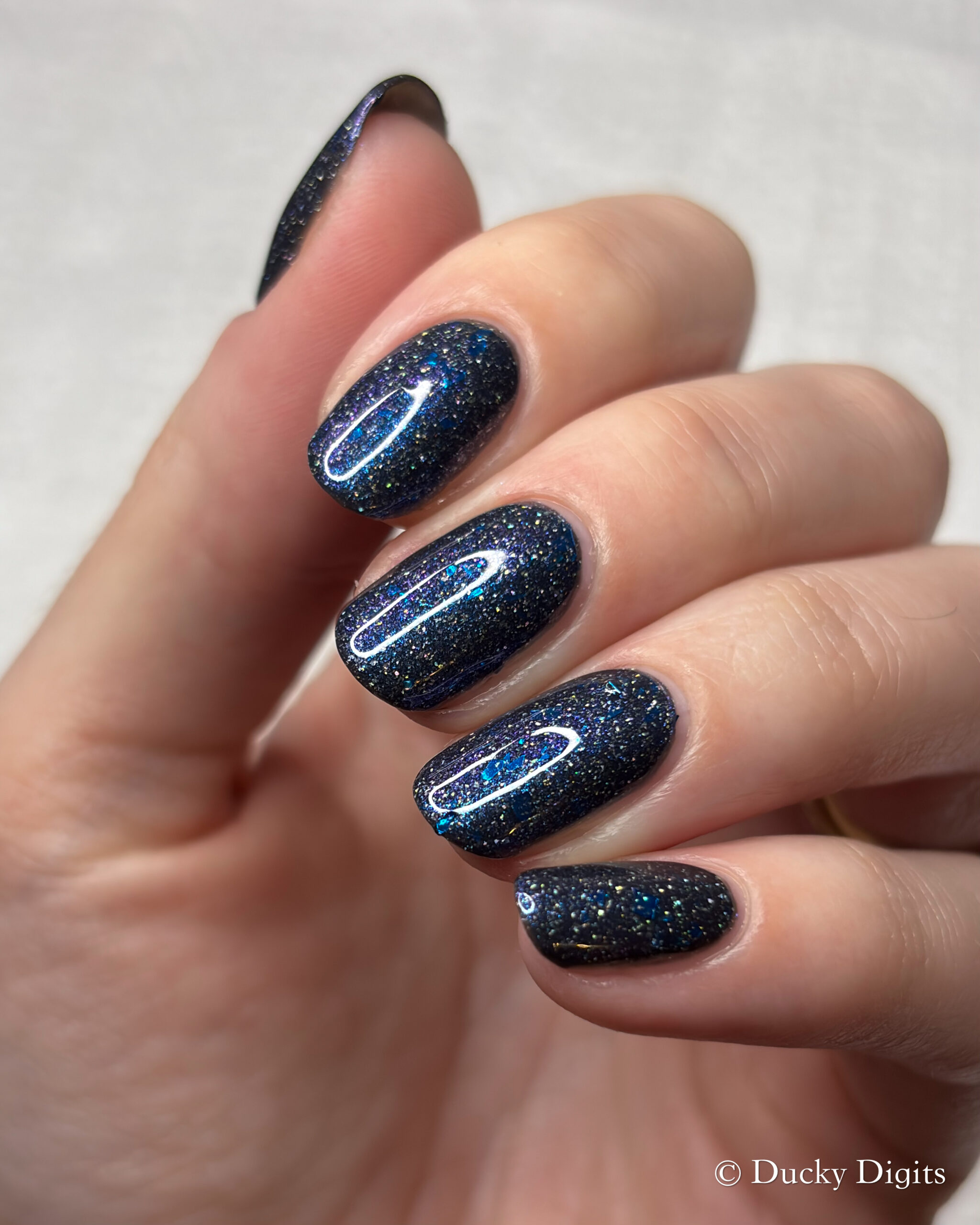 Lakehouse Lies is a black jelly base loaded with holo, shimmers that shift blue/purple, and bright blue and holo microflakes.
