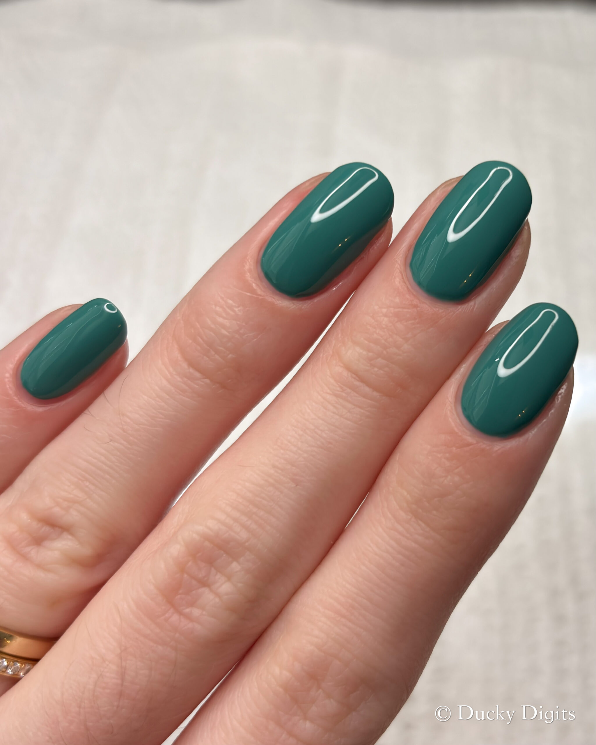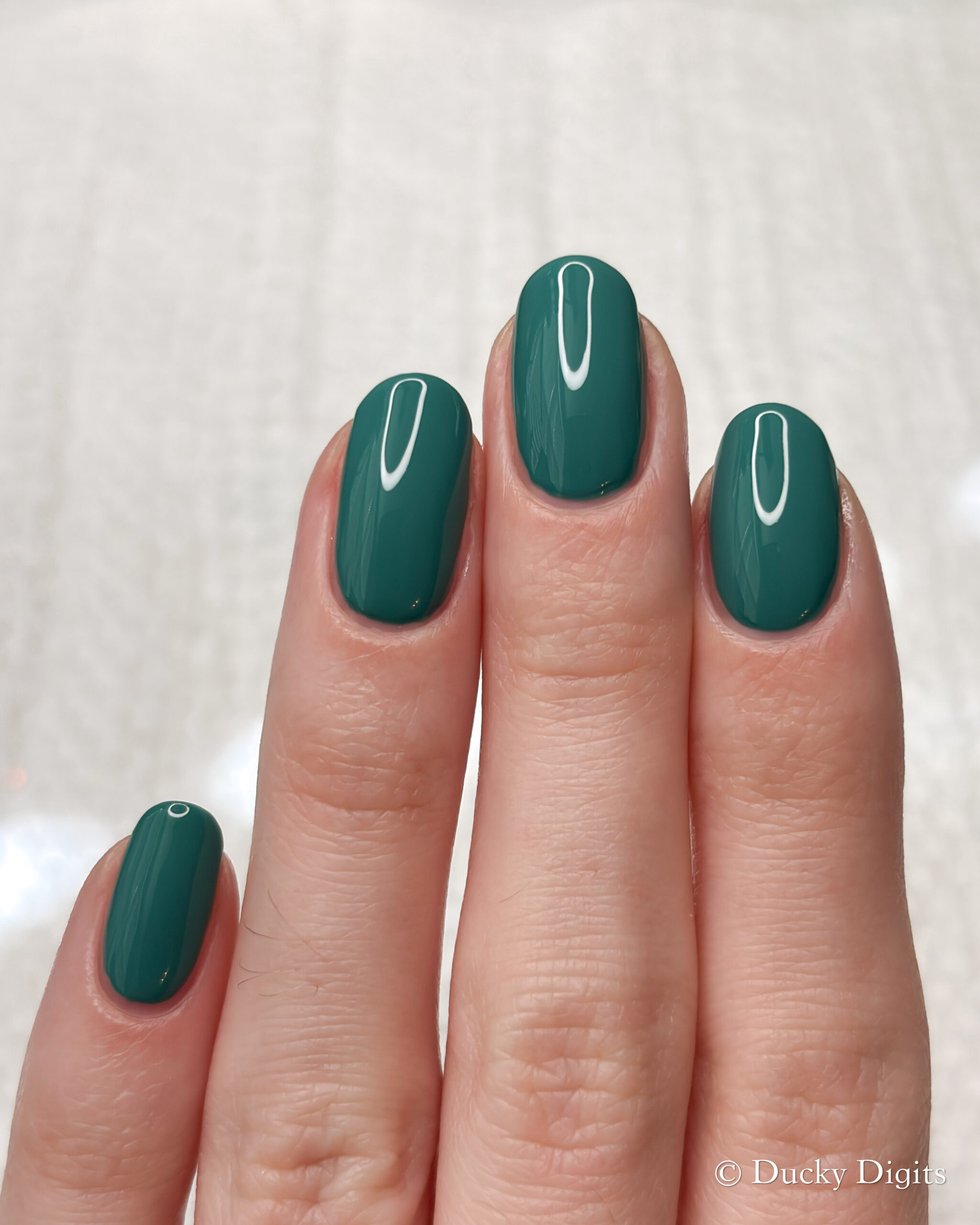 I never thought of a teal polish being a great fall color until I wore this one. I could see this creme working well with a dark orange or brown flannel.