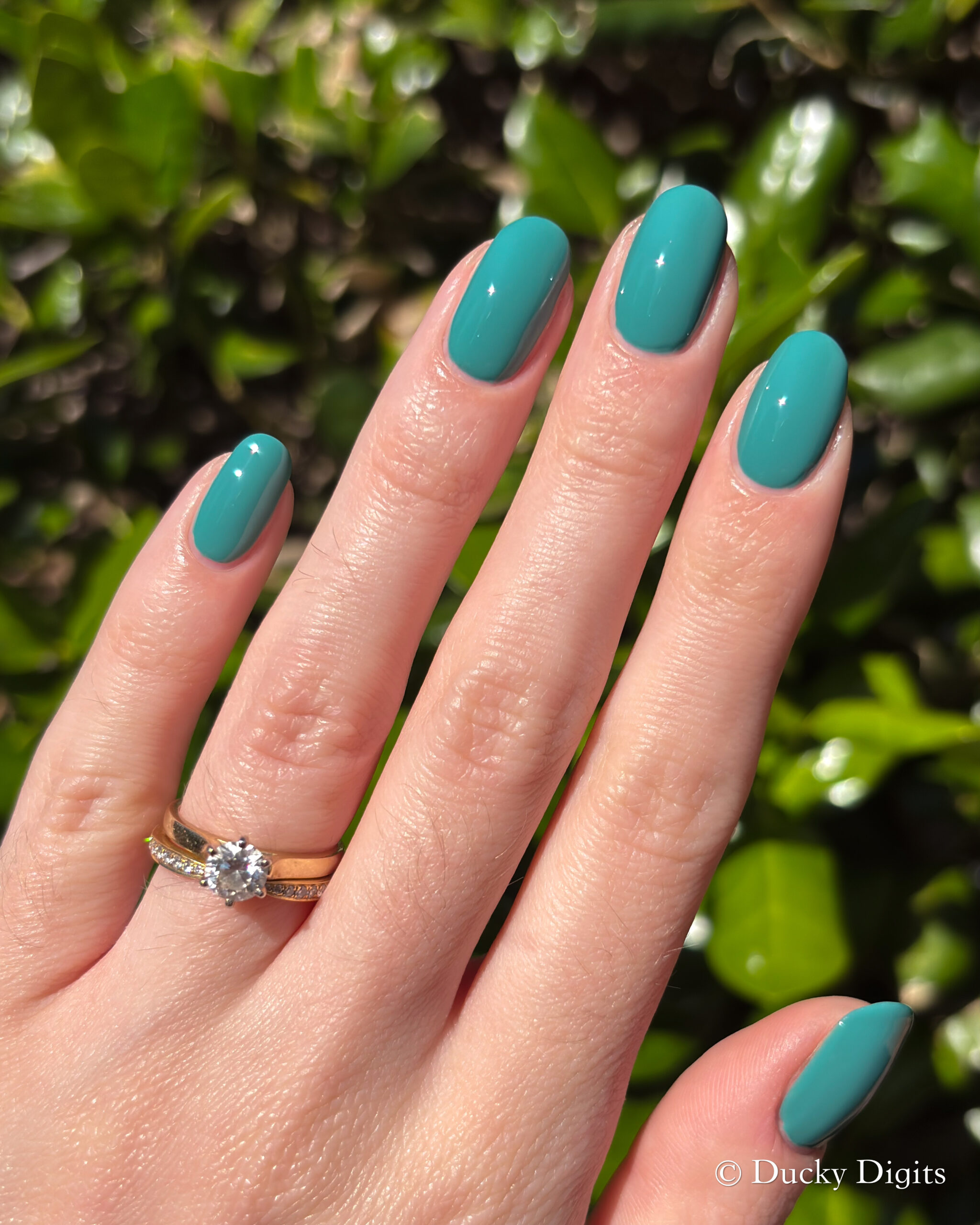 Sweet Southern Sabotage is a medium teal creme polish with green undertones.
