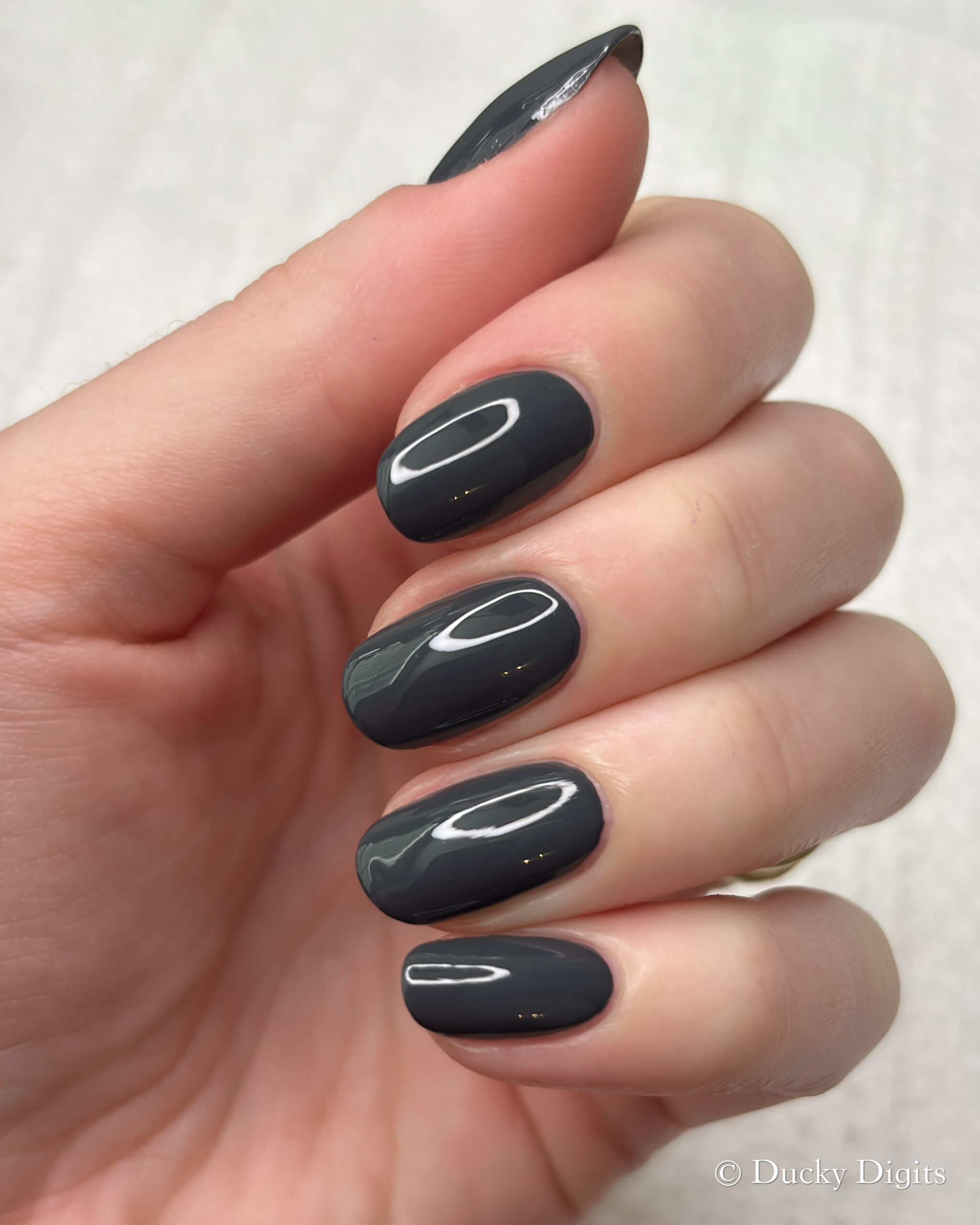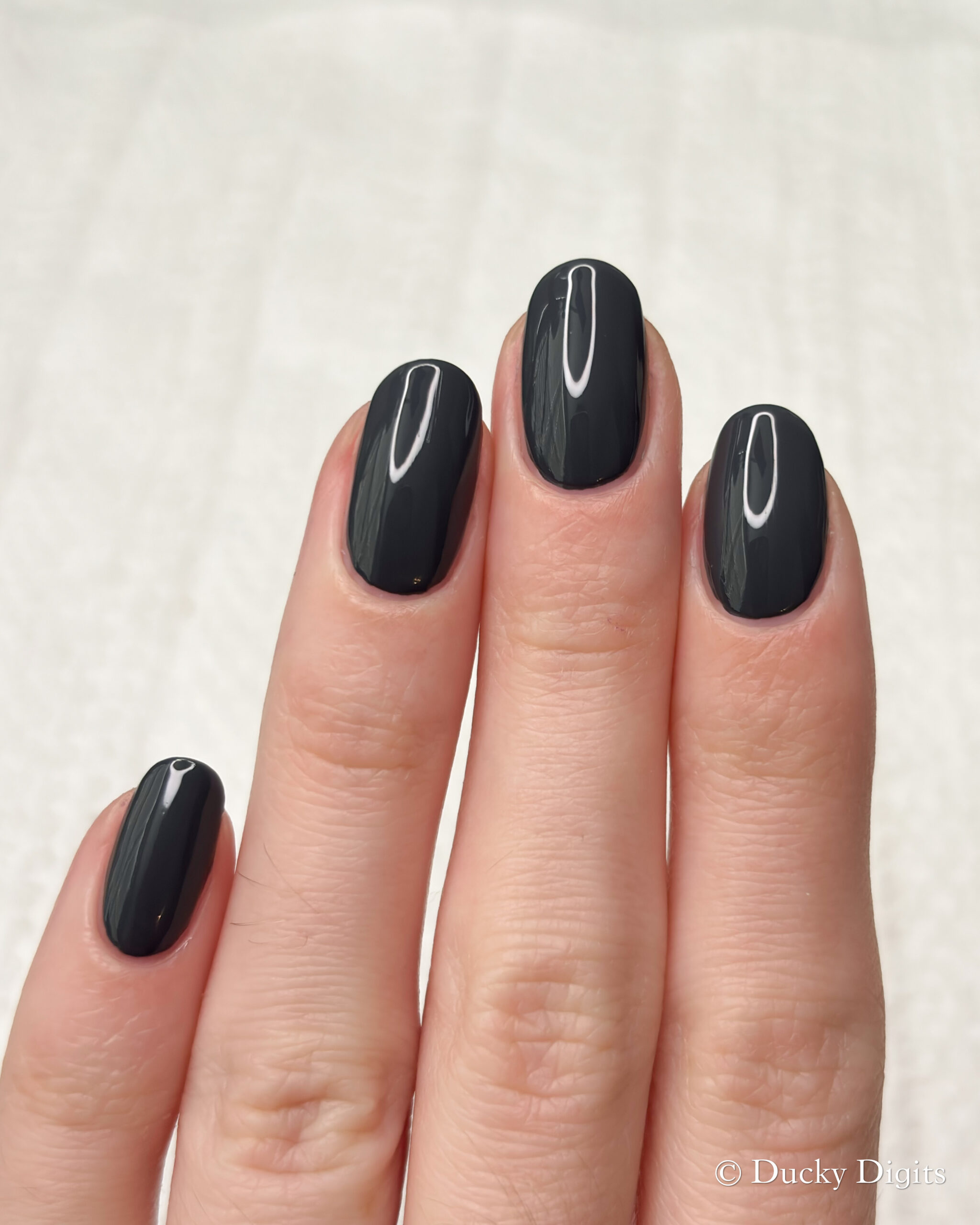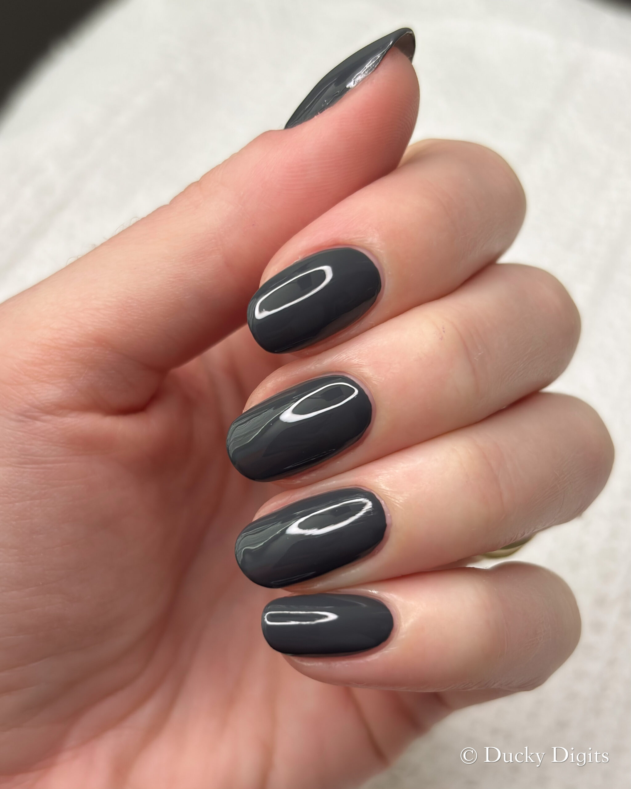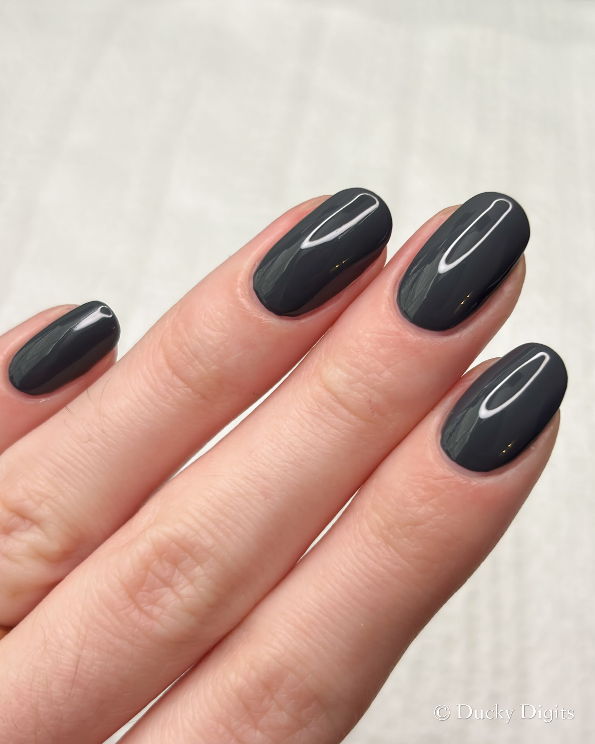 Hush, Honey is a dark and vampy charcoal creme polish.