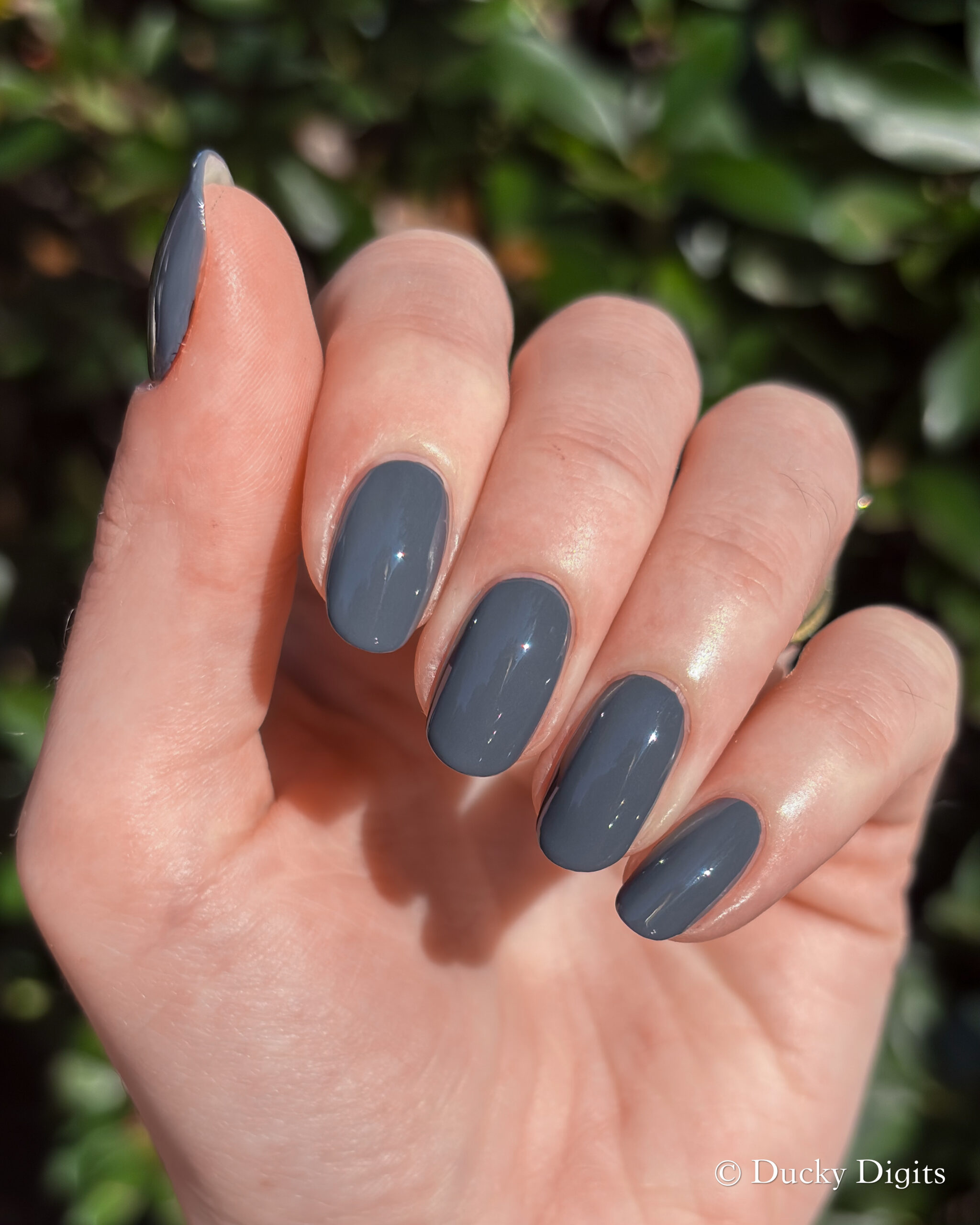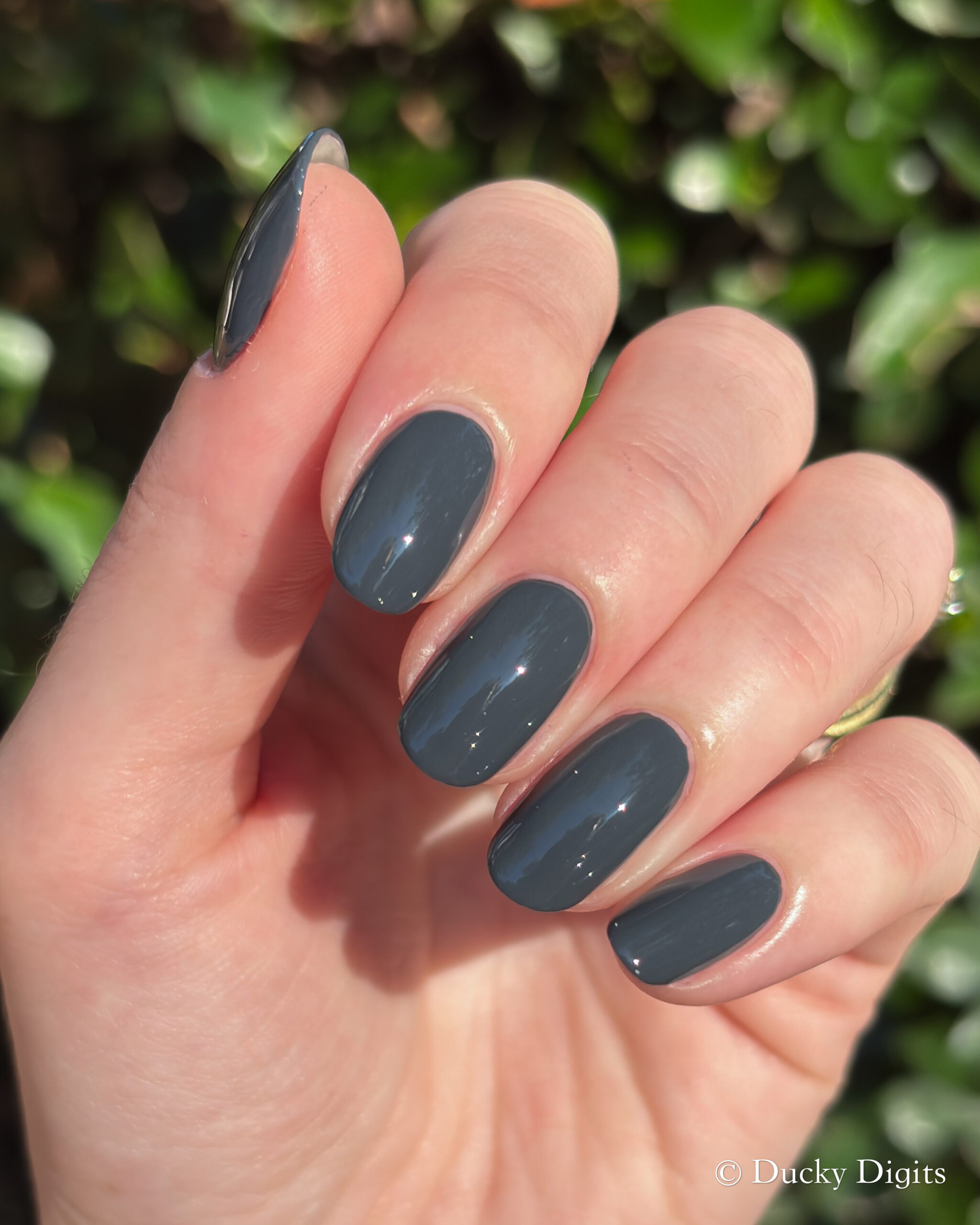 This polish is so close to being a one-coater polish, as it is almost perfectly opaque in just one coat. However, I could still see some of my nail line at extreme angles in one coat. With that said, there is no patchiness during application and it self-levels beautifully. The formula is buttery smooth and very easy to apply. It is also very fast drying and you can start your next coat after applying the first on all nails.