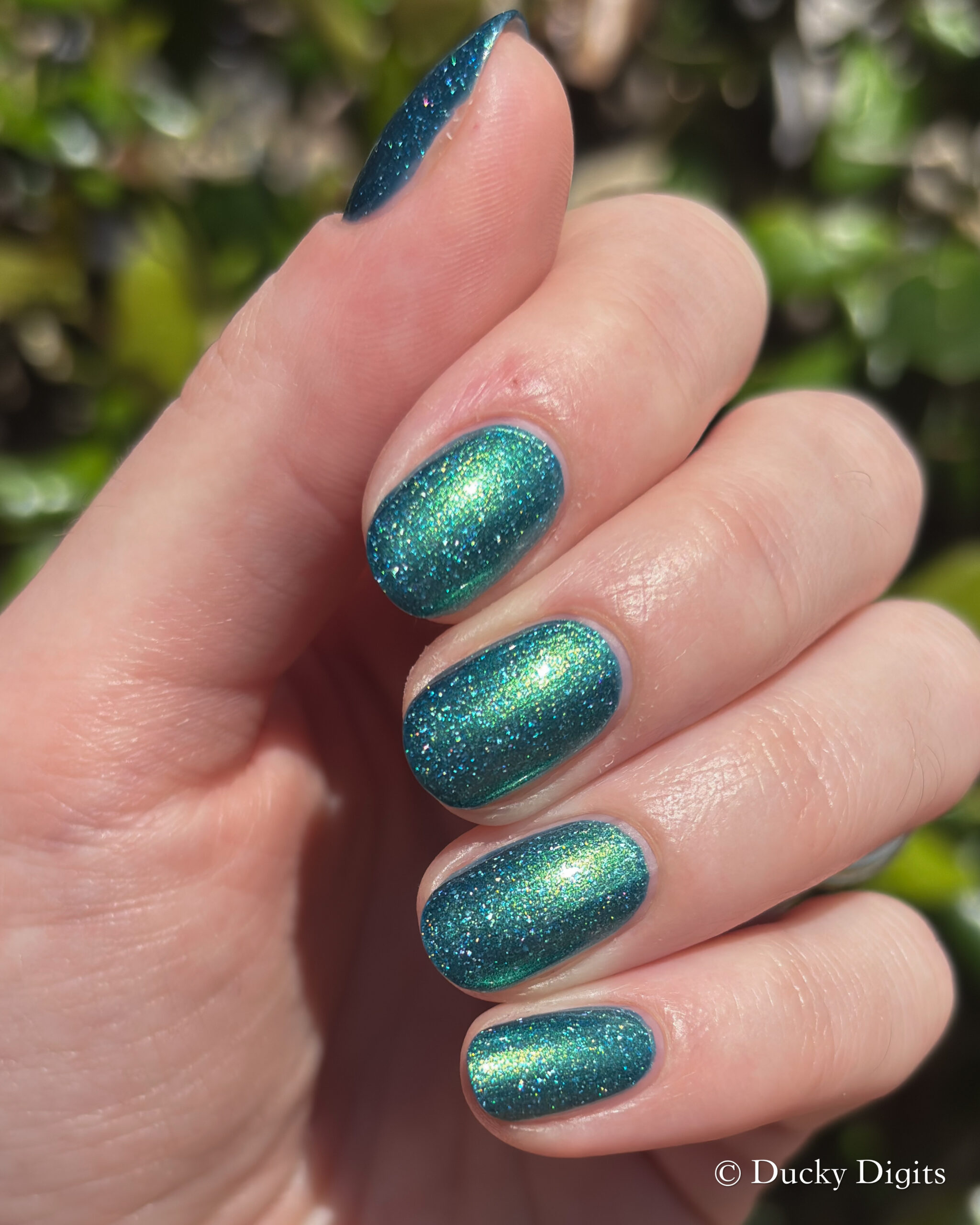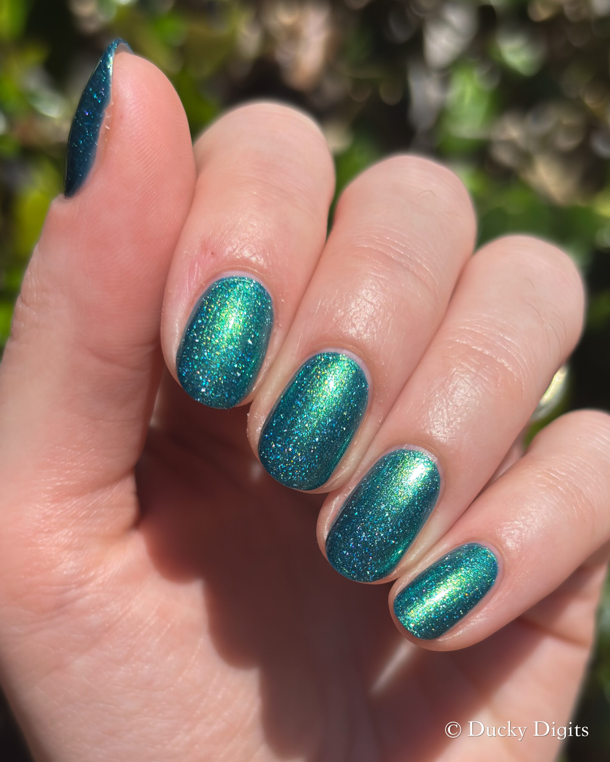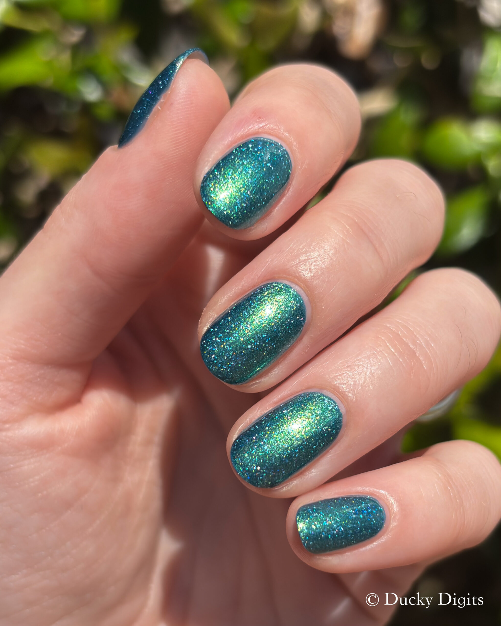 Speaking of the first coat, I think this one could be a one-coater! It looked completely opaque for me in one coat, so I did a second to plump it up then stopped there. It won’t need any glitter smoother, but I did add some to see if I could make those holo flakes really sing in the sun.