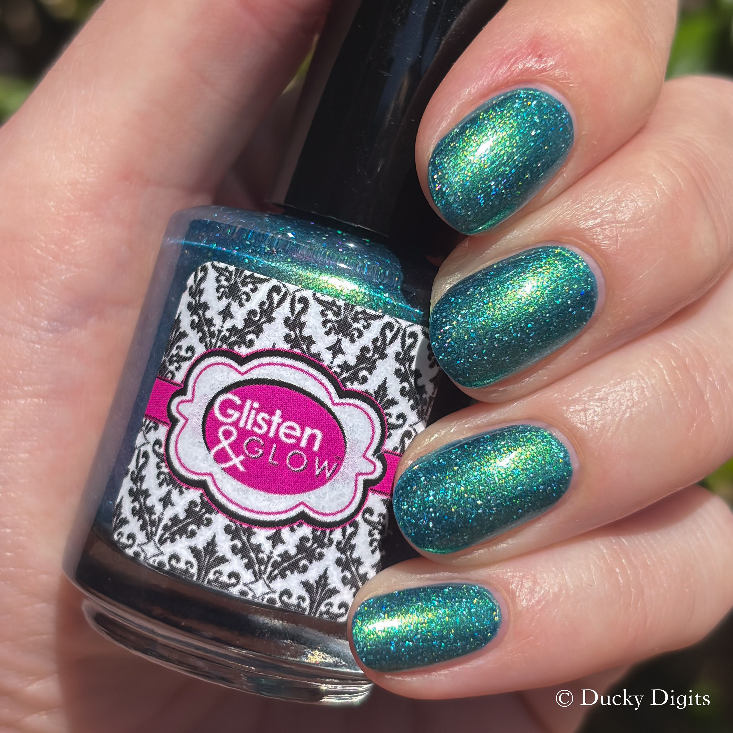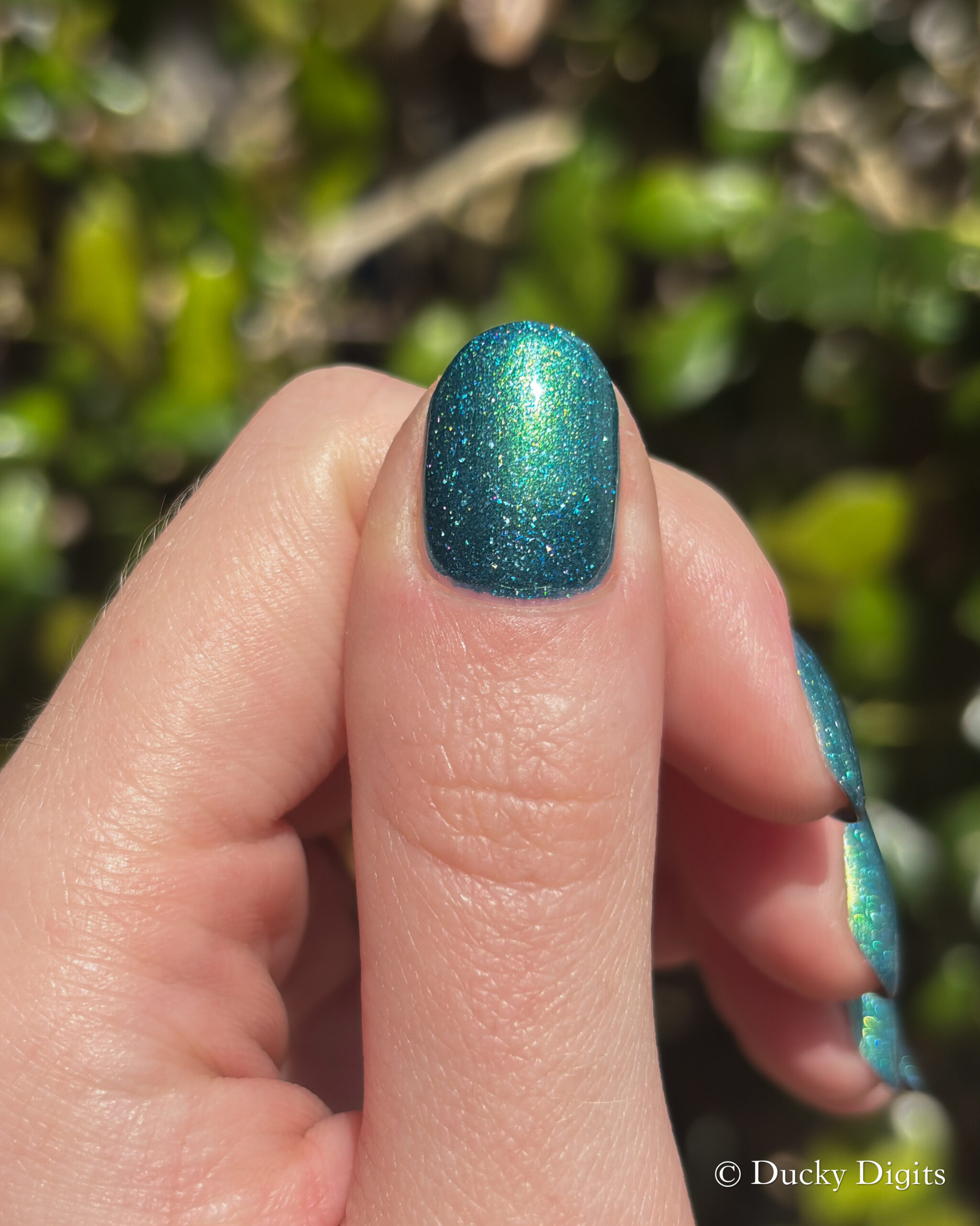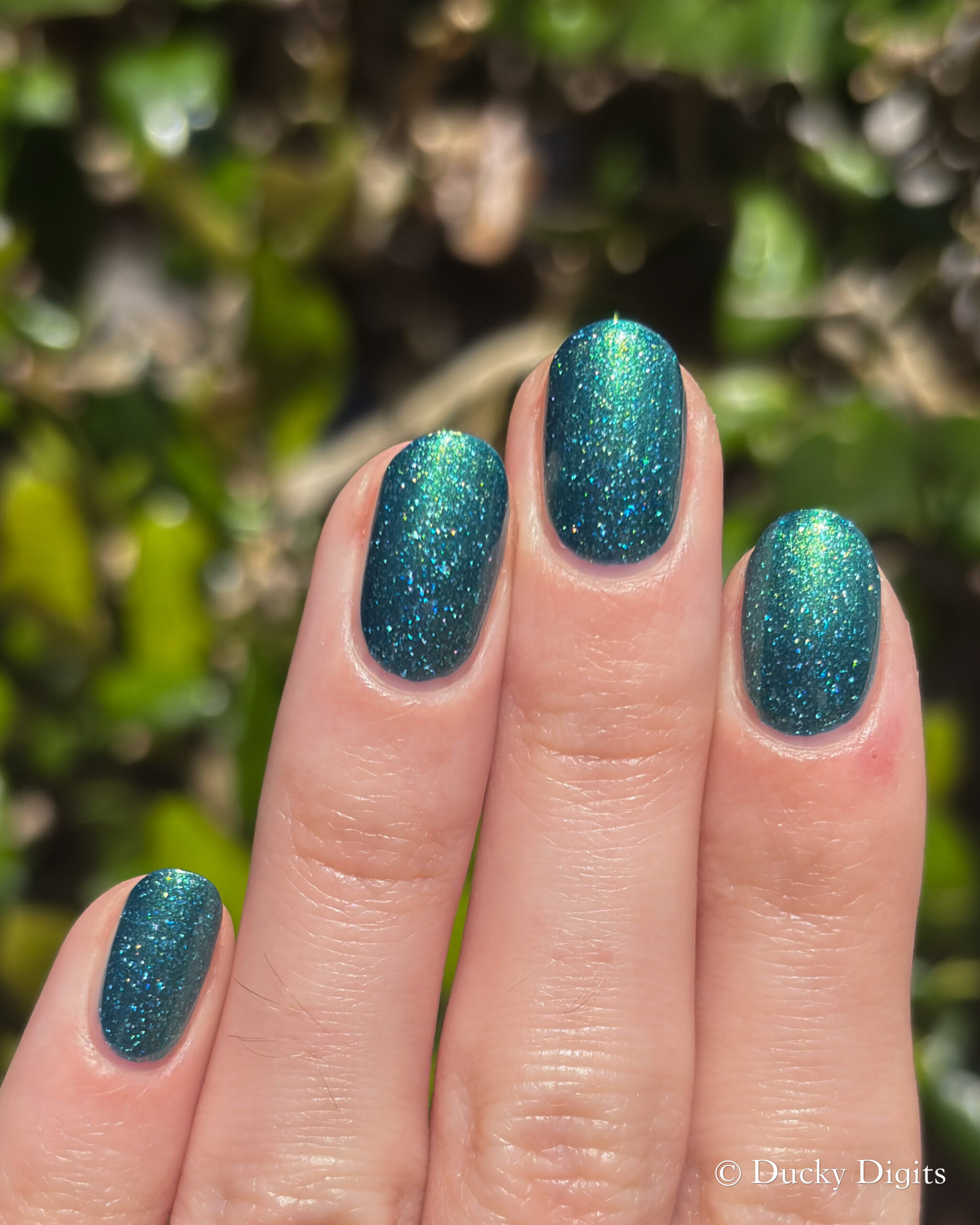 Speaking of the first coat, I think this one could be a one-coater! It looked completely opaque for me in one coat, so I did a second to plump it up then stopped there. It won’t need any glitter smoother, but I did add some to see if I could make those holo flakes really sing in the sun.