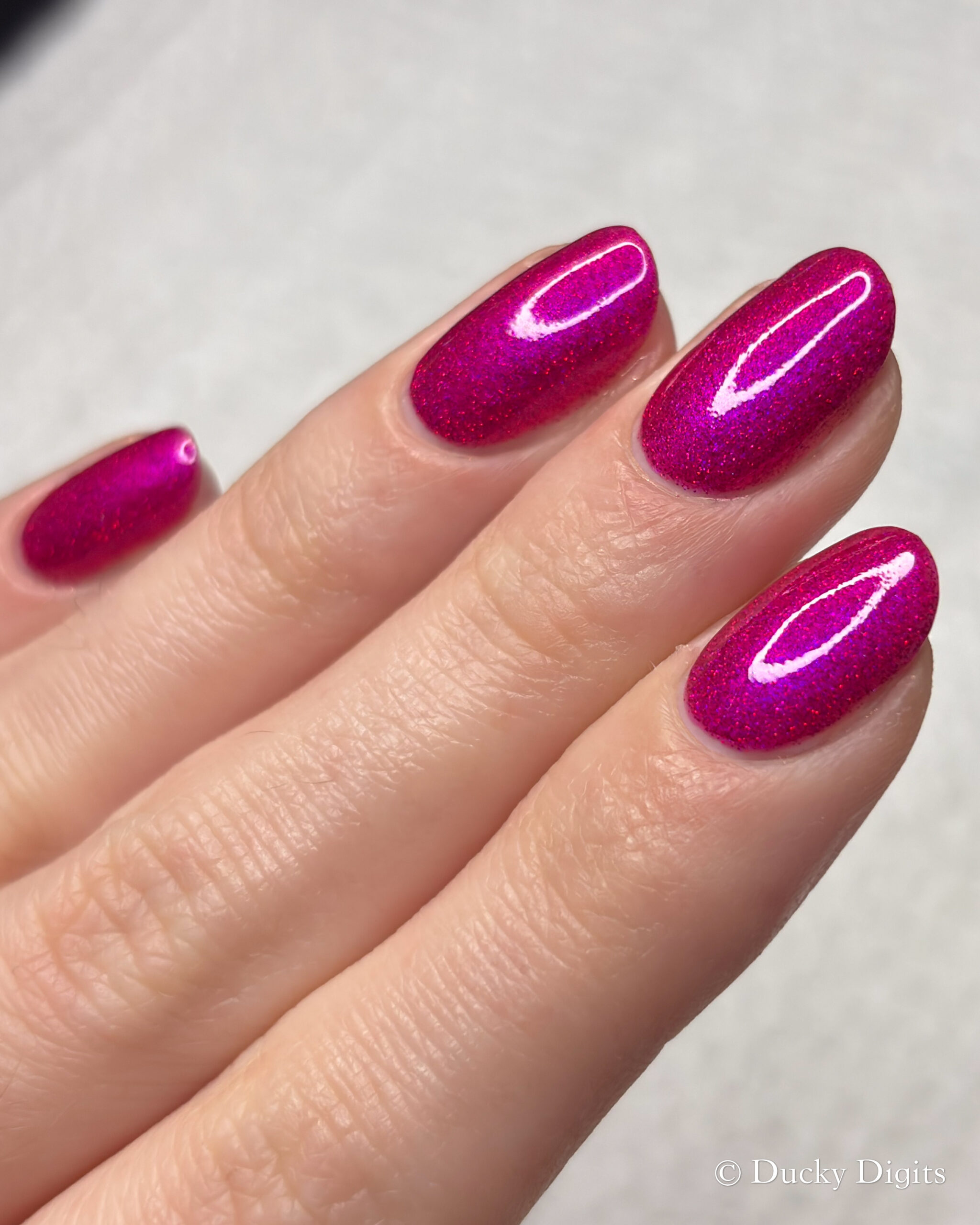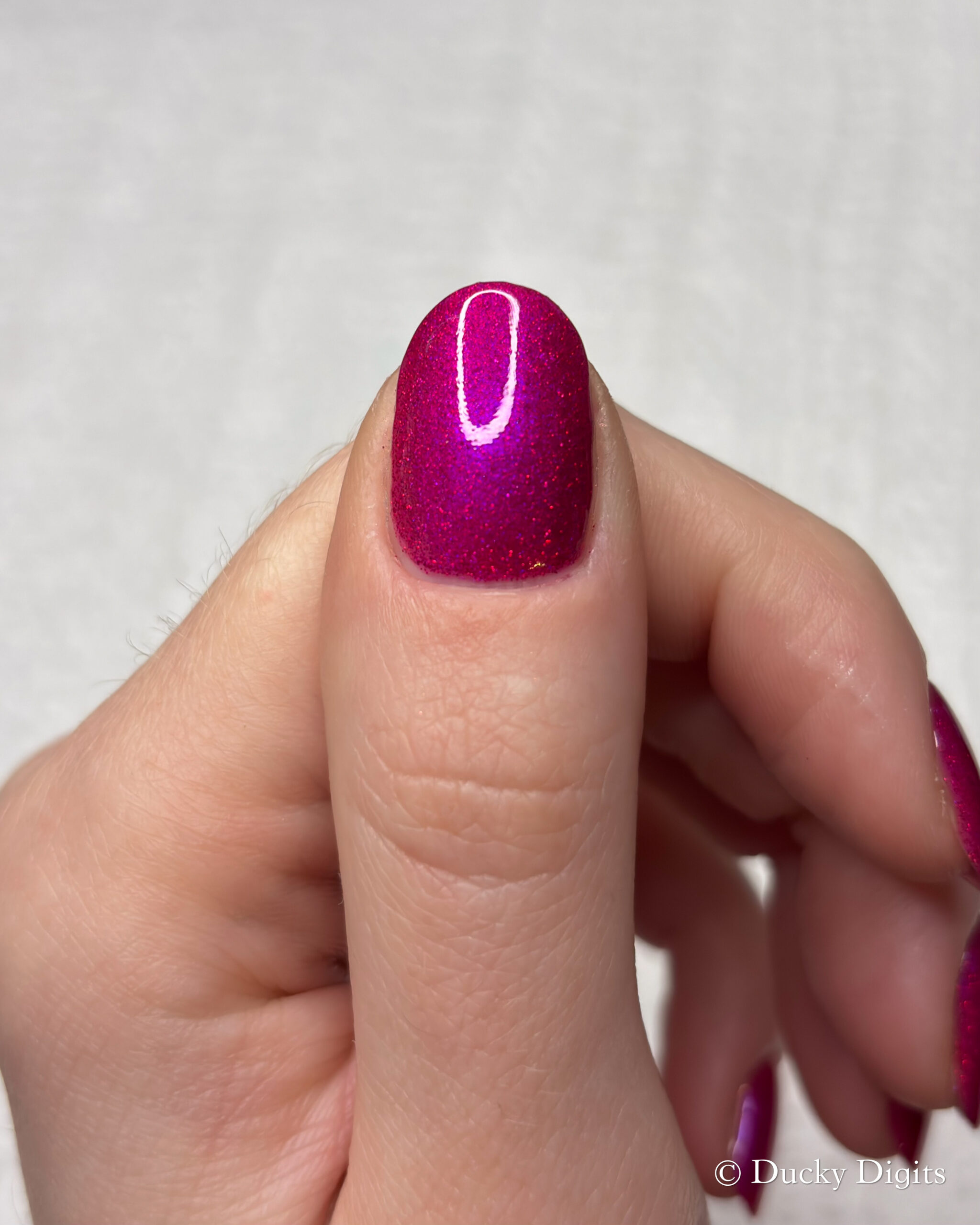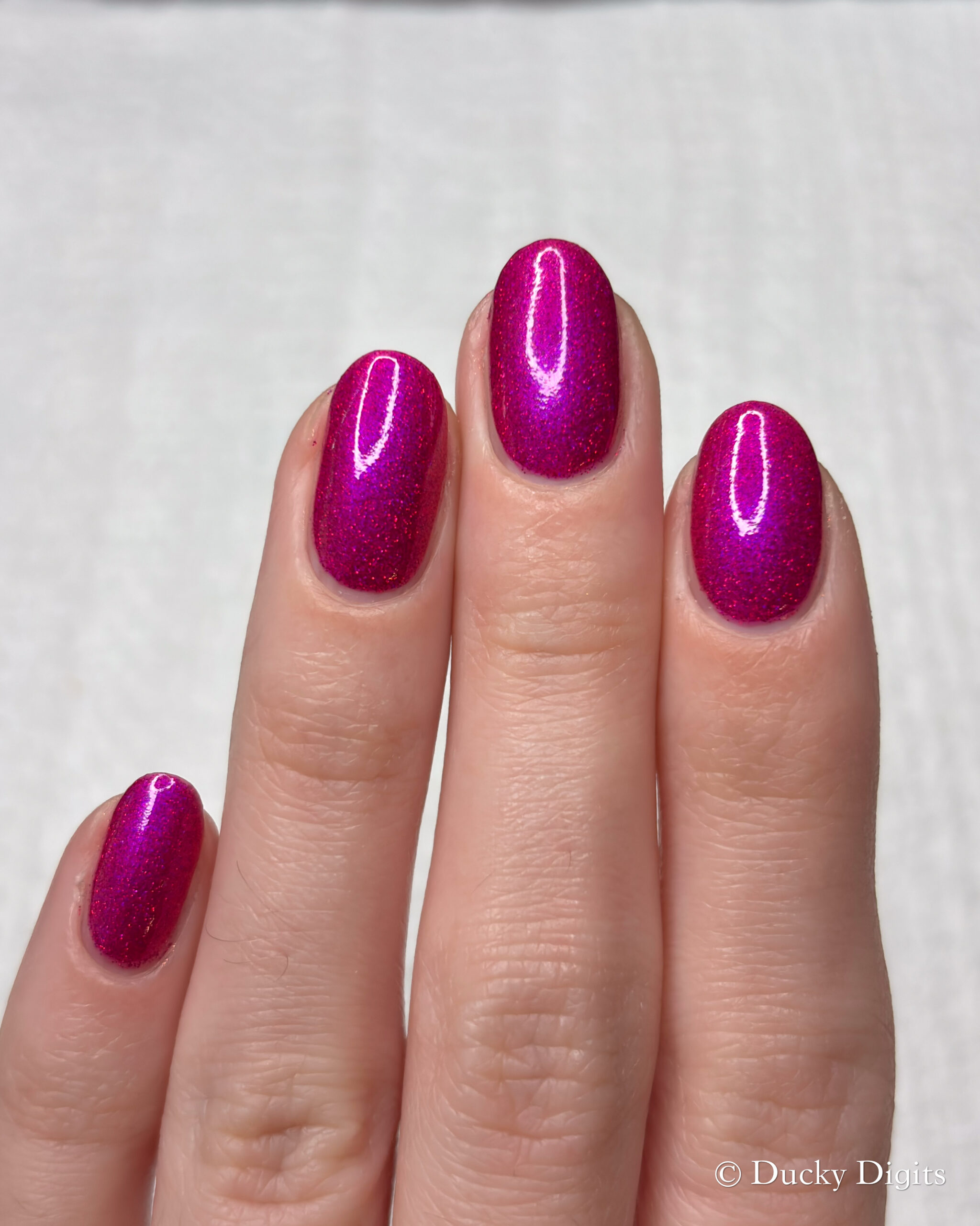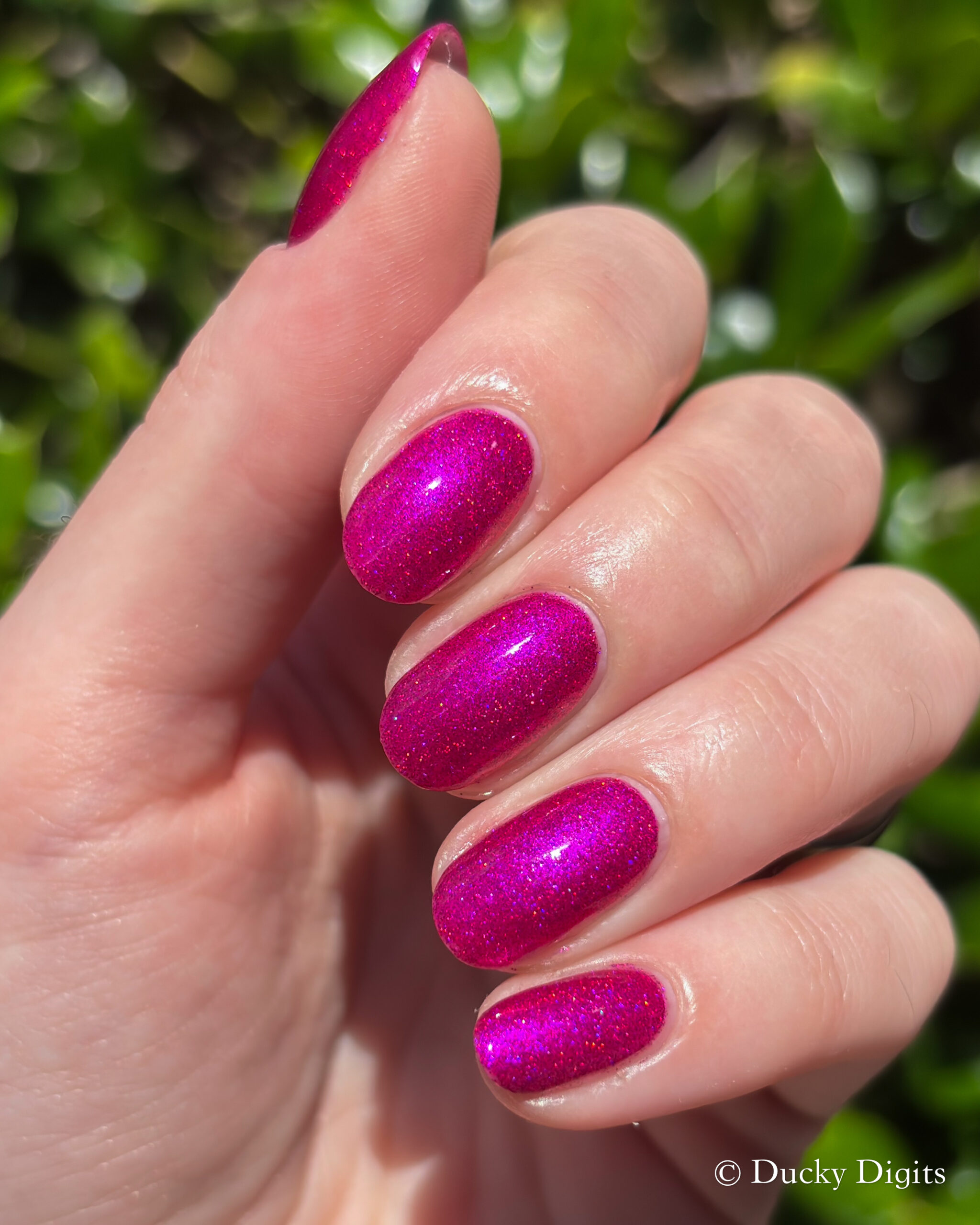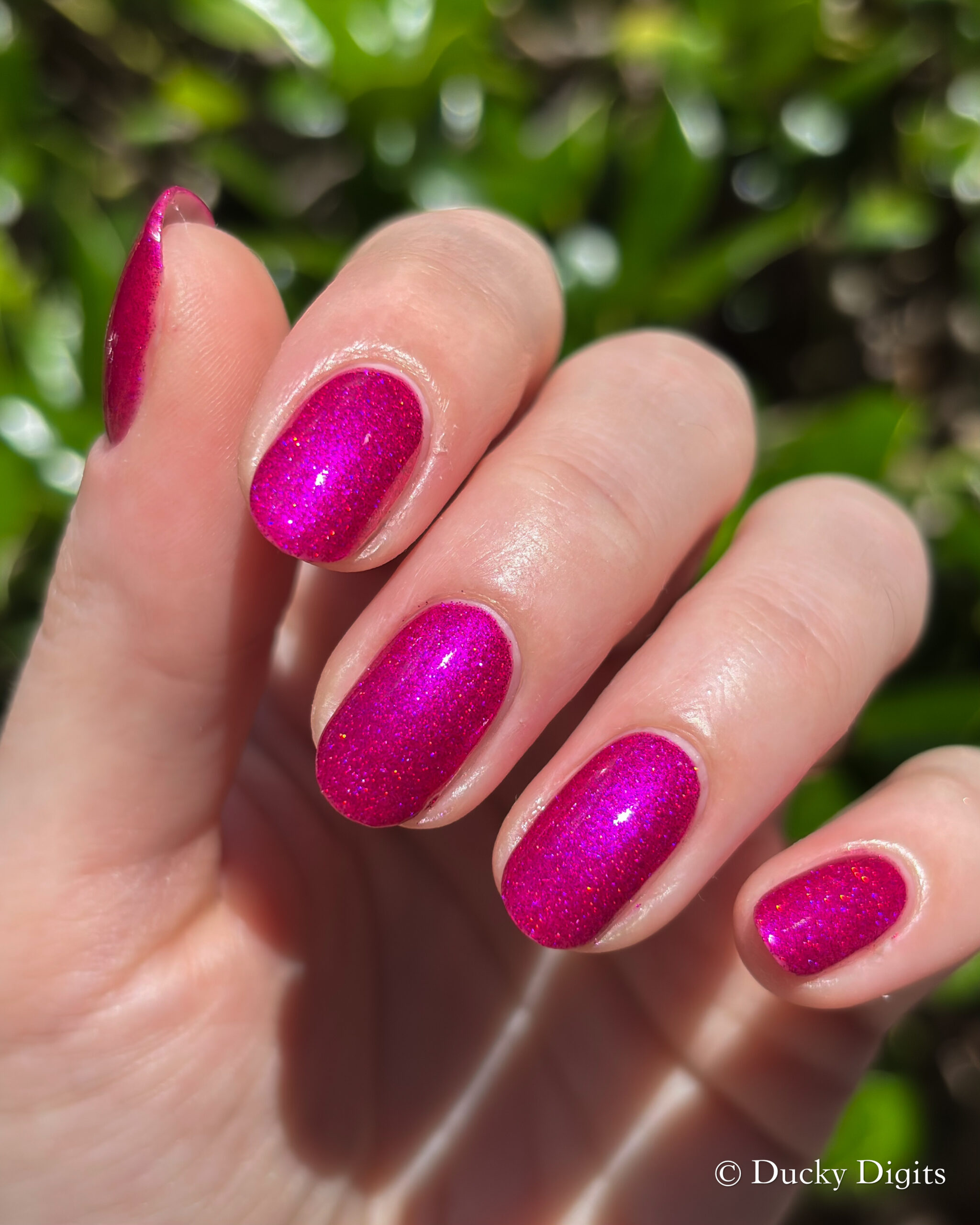 This polish was actually an illusion to me in a few ways! The first being that my phone just about freaked out taking photos of this manicure. Don’t let the photos fool you: this polish is a sparkly, juicy beauty.