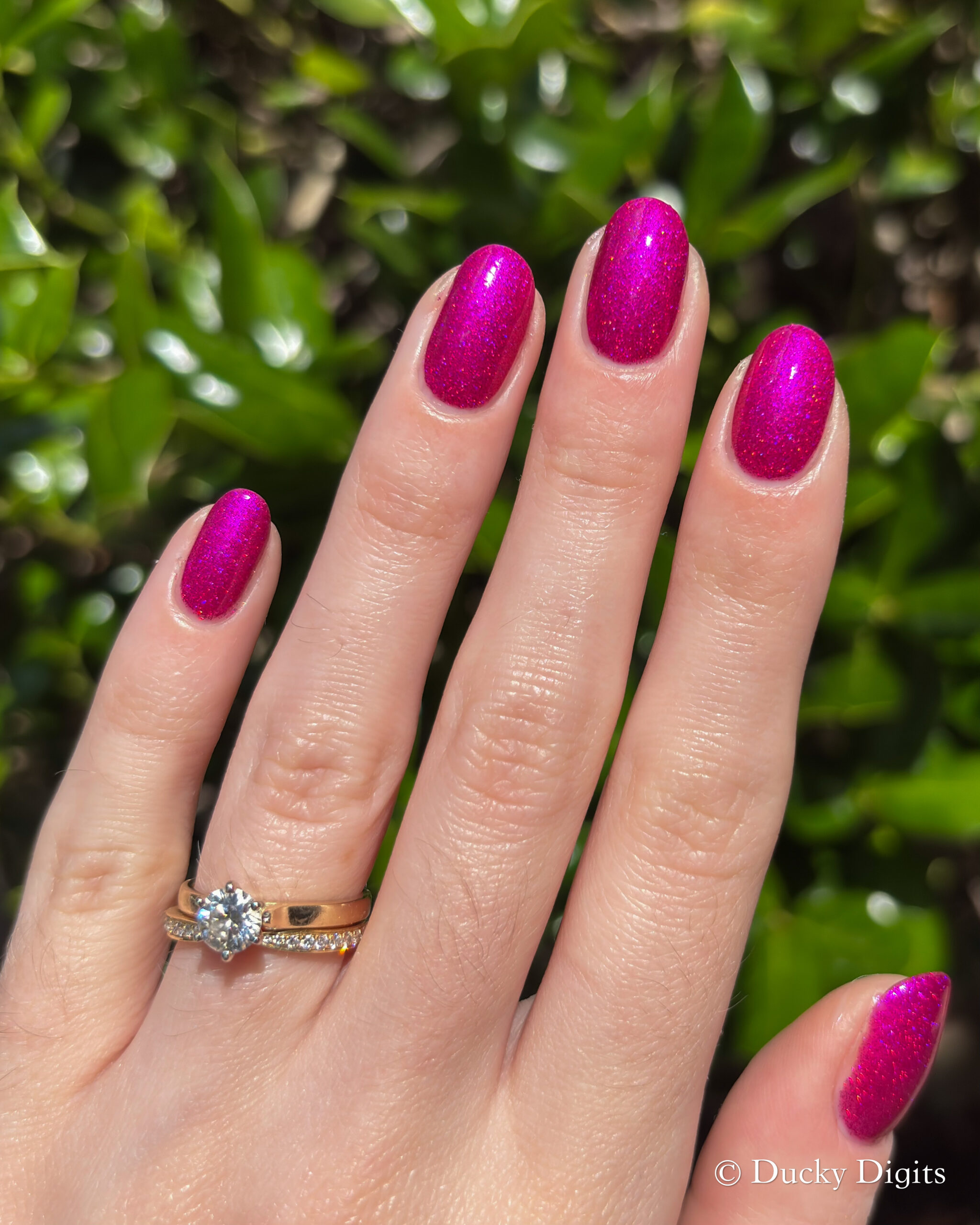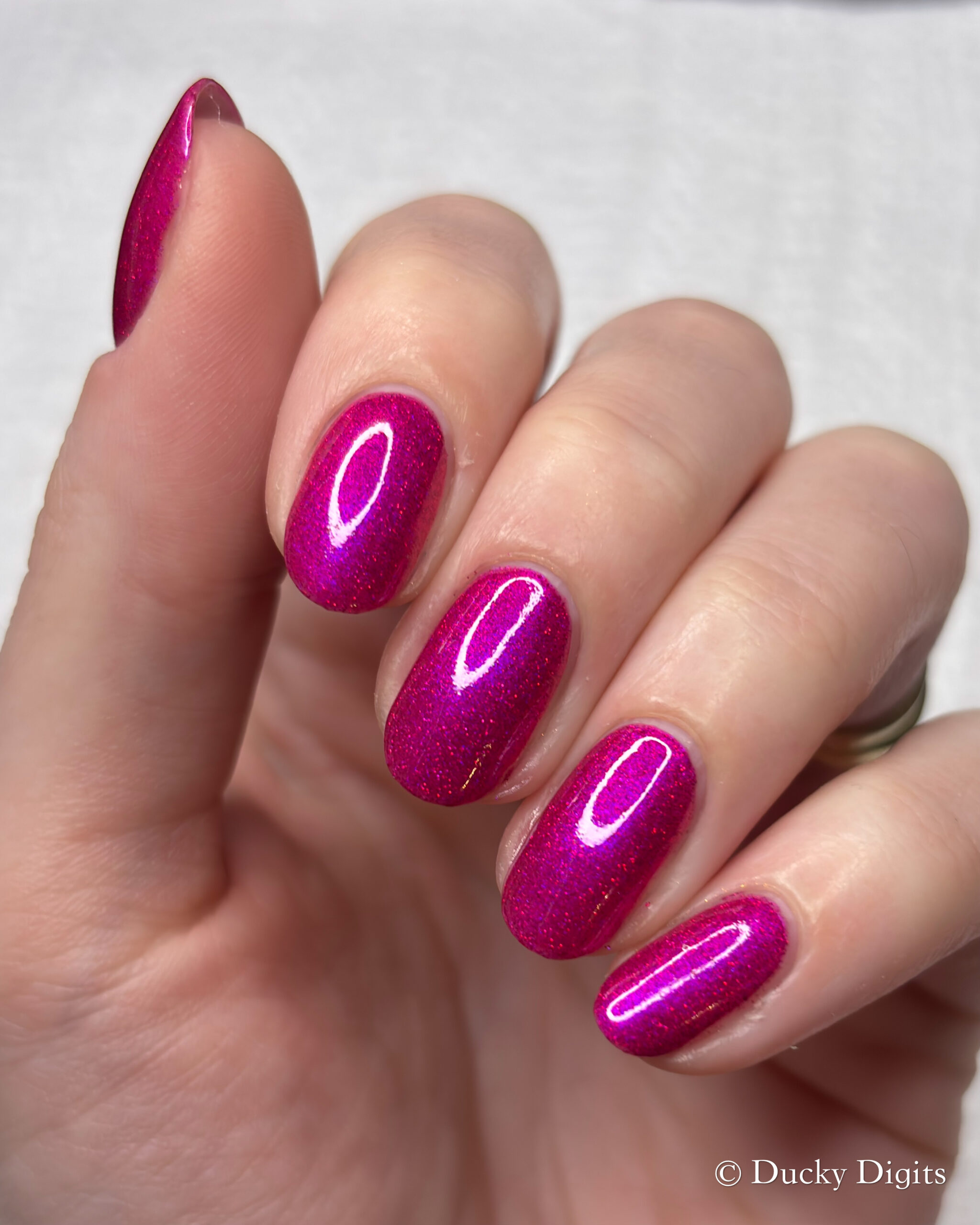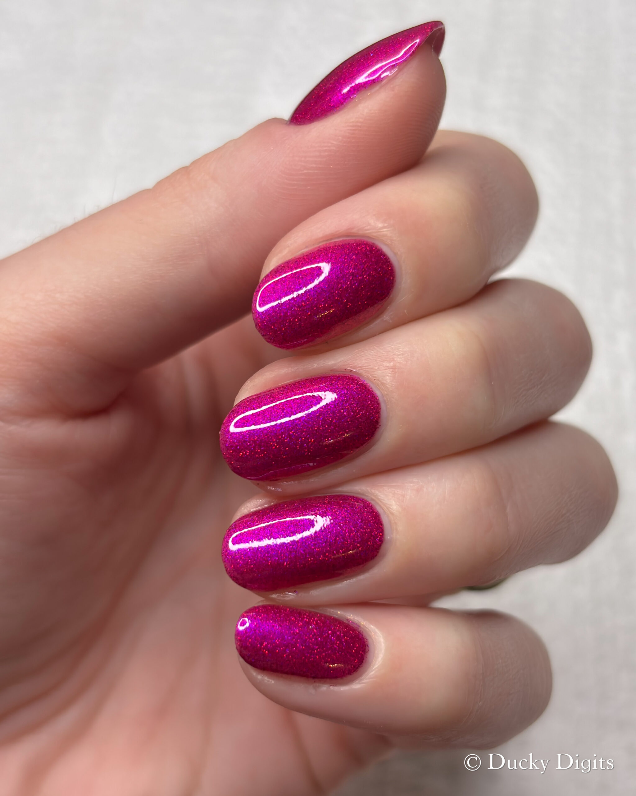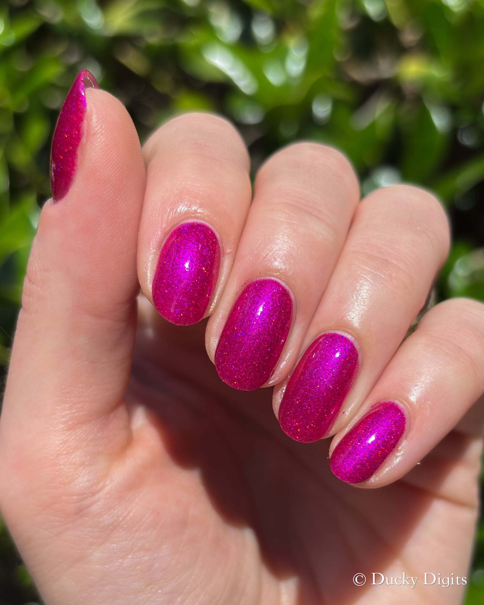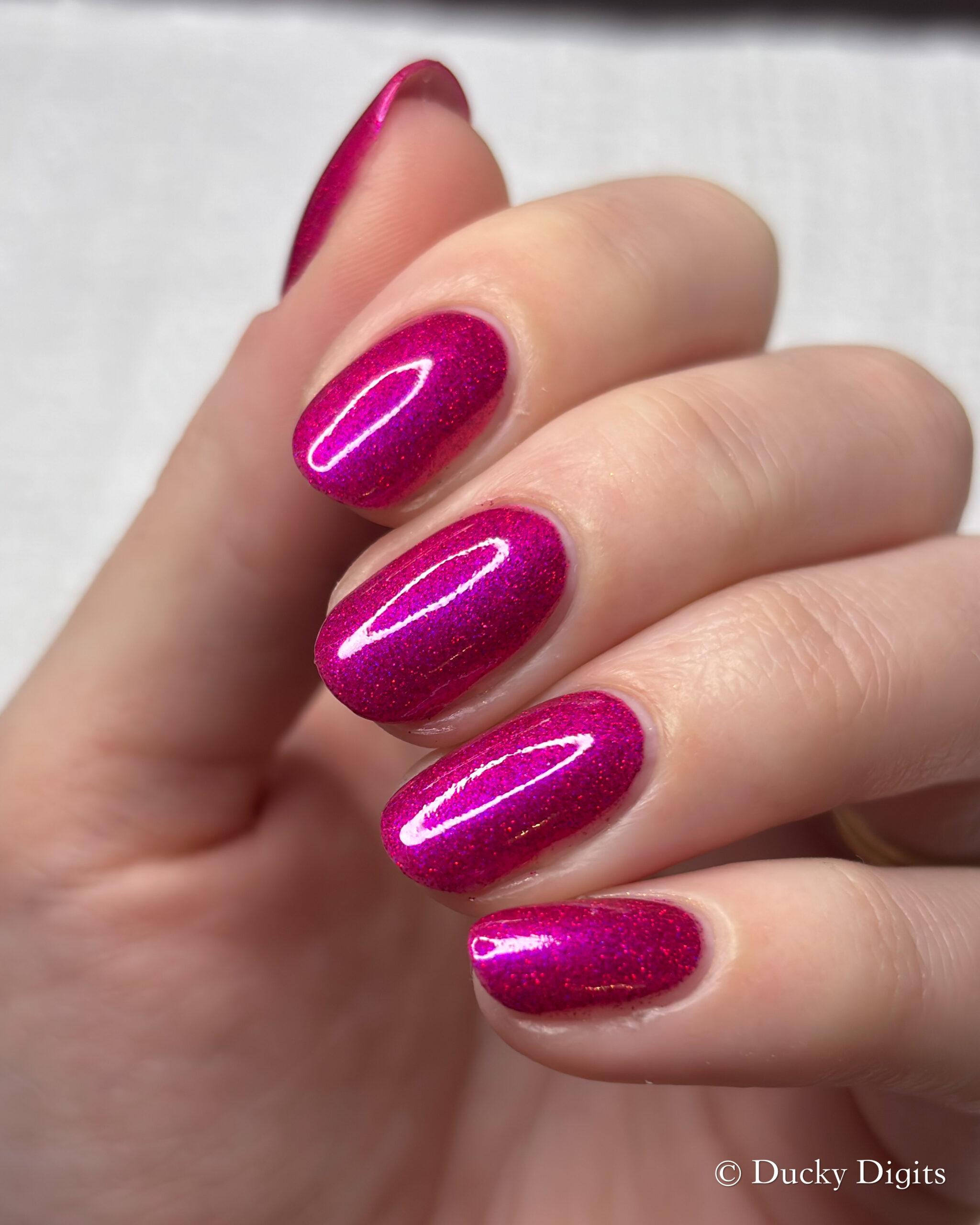 This polish was actually an illusion to me in a few ways! The first being that my phone just about freaked out taking photos of this manicure. Don’t let the photos fool you: this polish is a sparkly, juicy beauty.